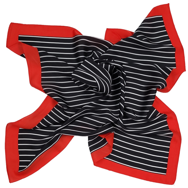 Ασπρόμαυρη τετράγωνη ριγέ μαντήλα με κόκκινη μπορντούρα από σύμμεικτο μετάξι