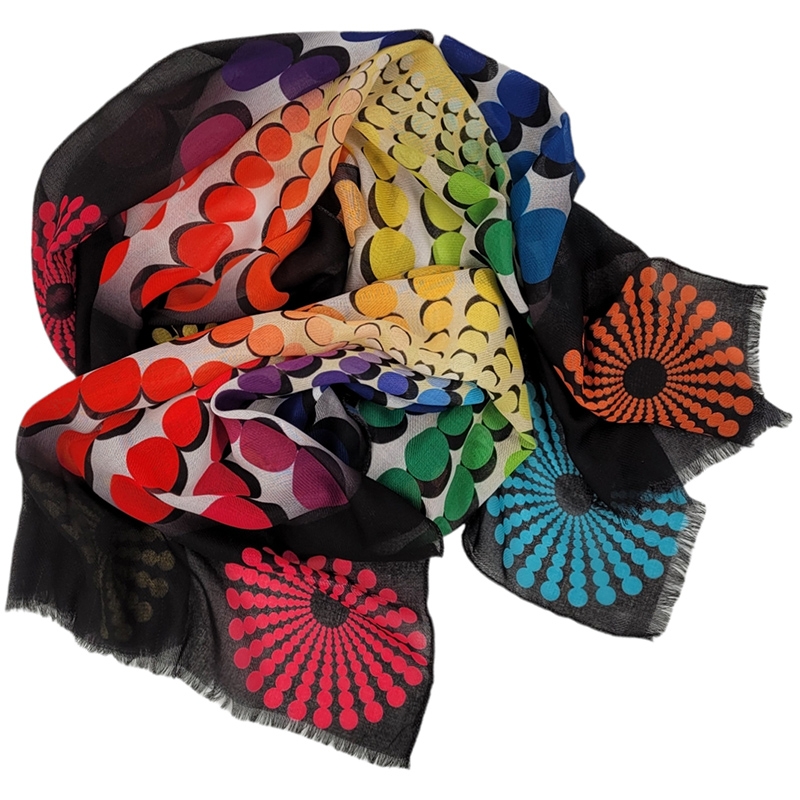 Μαύρο Ιταλικό φαρδύ φουλάρι με πολύχρωμους κύκλους
