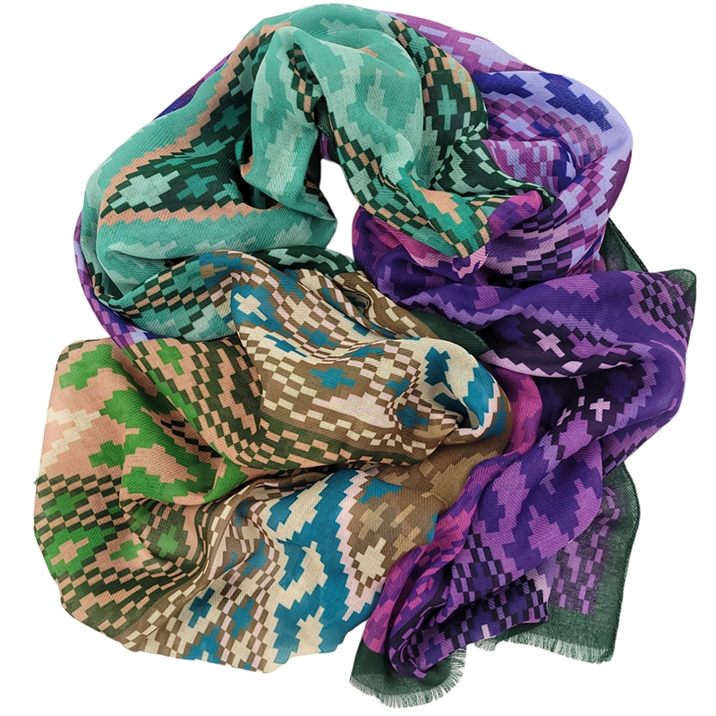 Ιταλικό φαρδύ φουλάρι με μωβ και πράσινες αποχρώσεις Digit