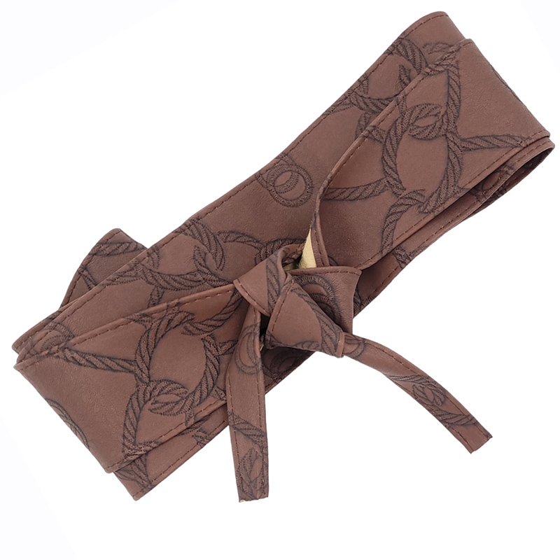 Καφέ φαρδιά μονόχρωμη ζώνη με ανάγλυφο σχέδιο αλυσίδες και διπλό γύρισμα