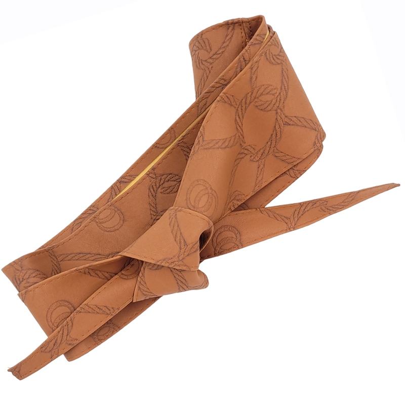 Ταμπά φαρδιά μονόχρωμη ζώνη με ανάγλυφο σχέδιο αλυσίδες και διπλό γύρισμα