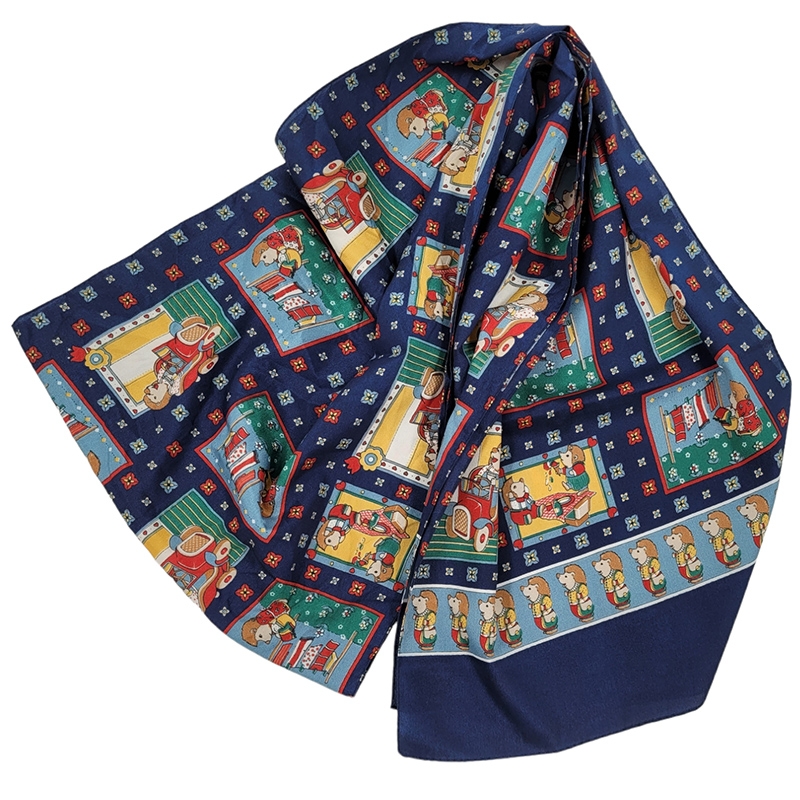 Μπλε Ιταλικό φουλάρι με λουλουδάκια και σκαντζόχοιρους