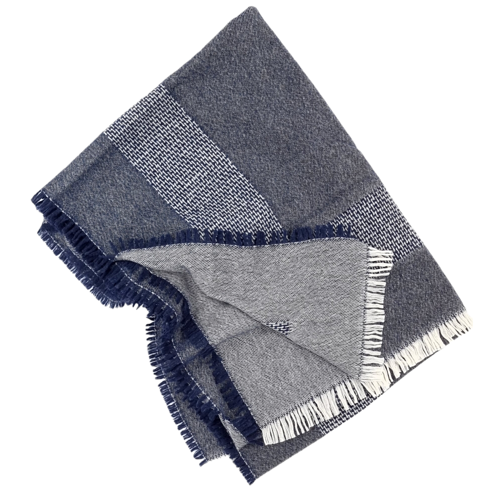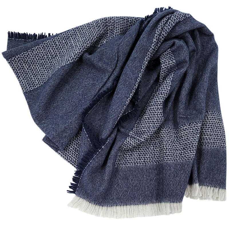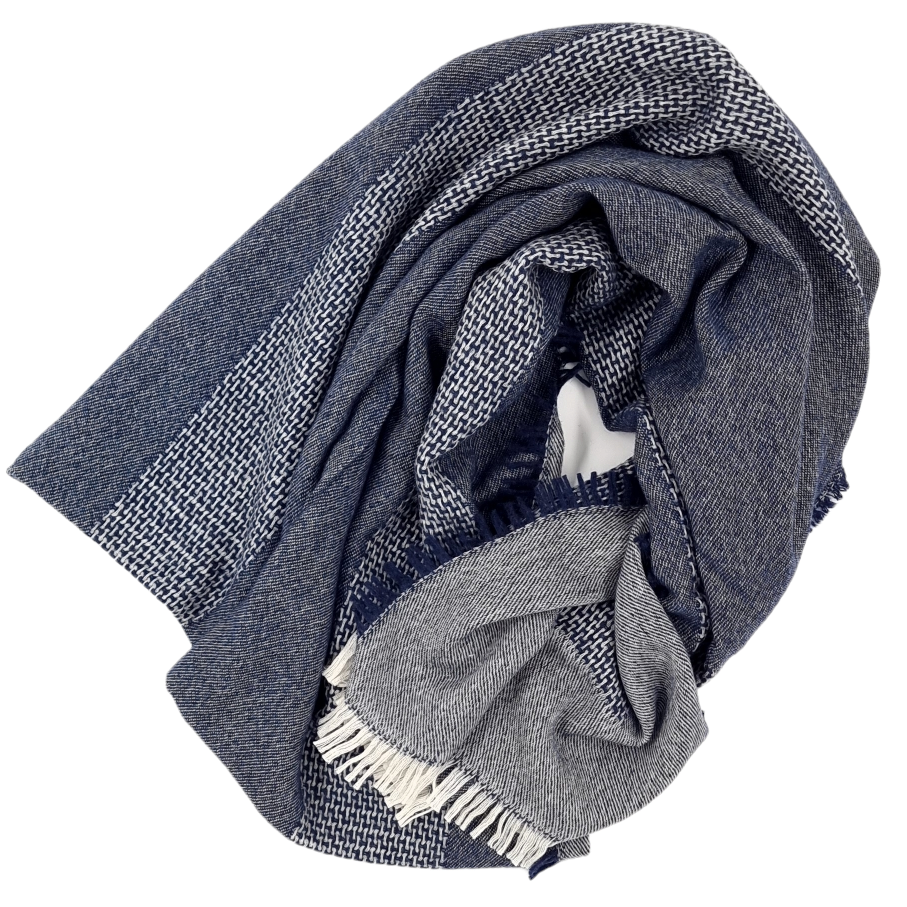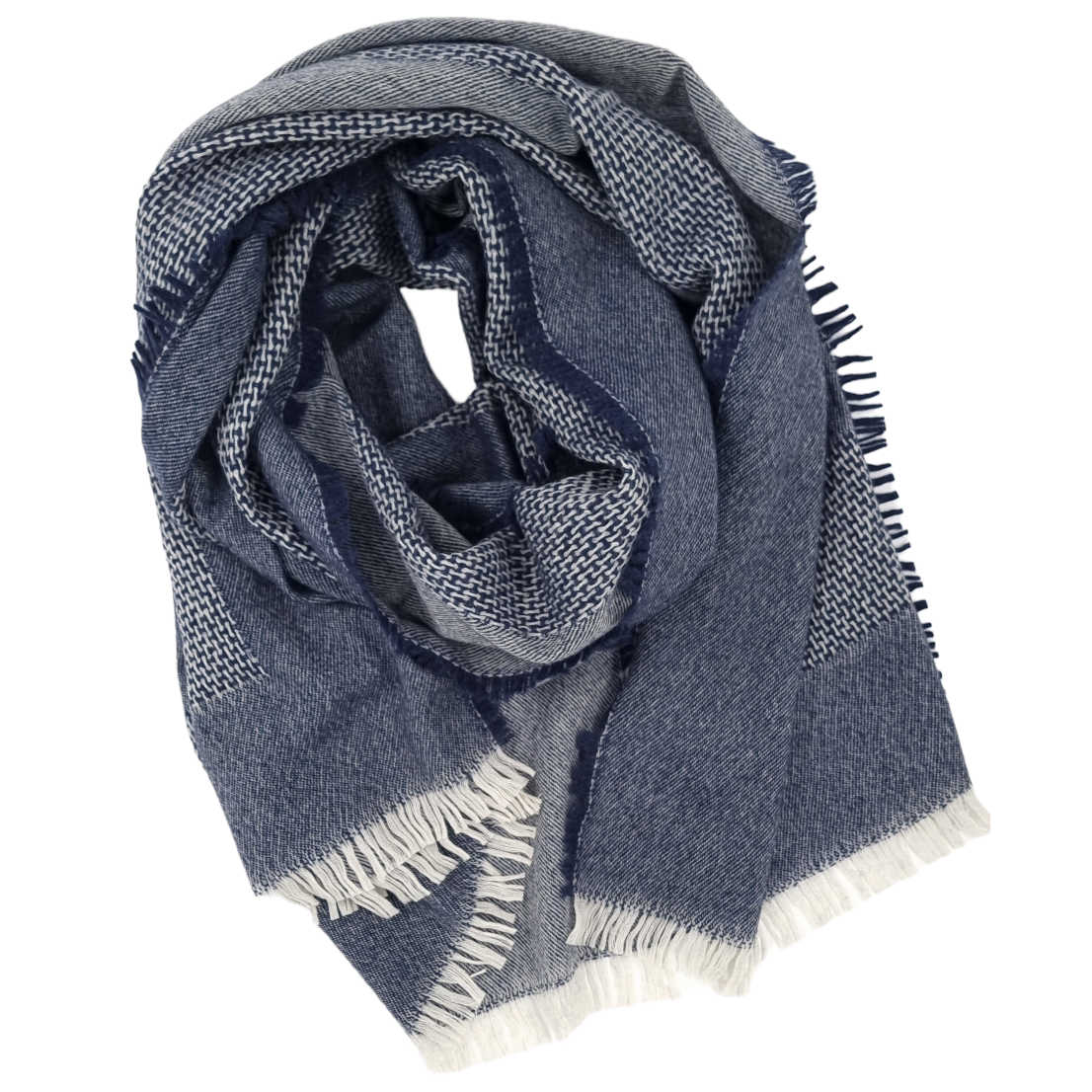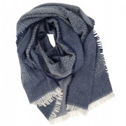 Μπλε jean με εκρού Ιταλικό φαρδύ unisex φουλάρι blanket από σύμμεικτο μαλλί εξαιρετικής ποιότητας
