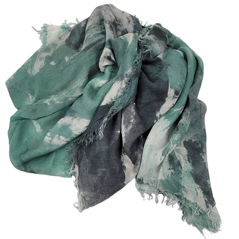 Ανθρακί, εκρού και βεραμάν φαρδύ Ιταλικό φουλάρι Brush dyed από modal