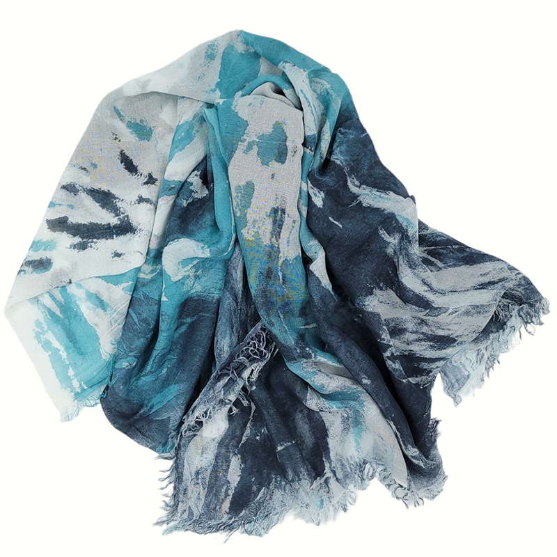 Ανθρακί, εκρού και πετρόλ φαρδύ Ιταλικό φουλάρι Brush dyed από modal