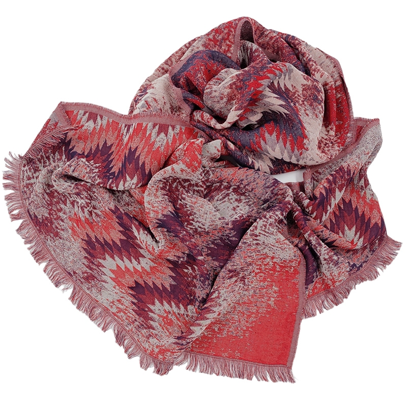 Wine κόκκινο, μωβ και γκρι φαρδύ viscose Ιταλικό φουλάρι Aztec print
