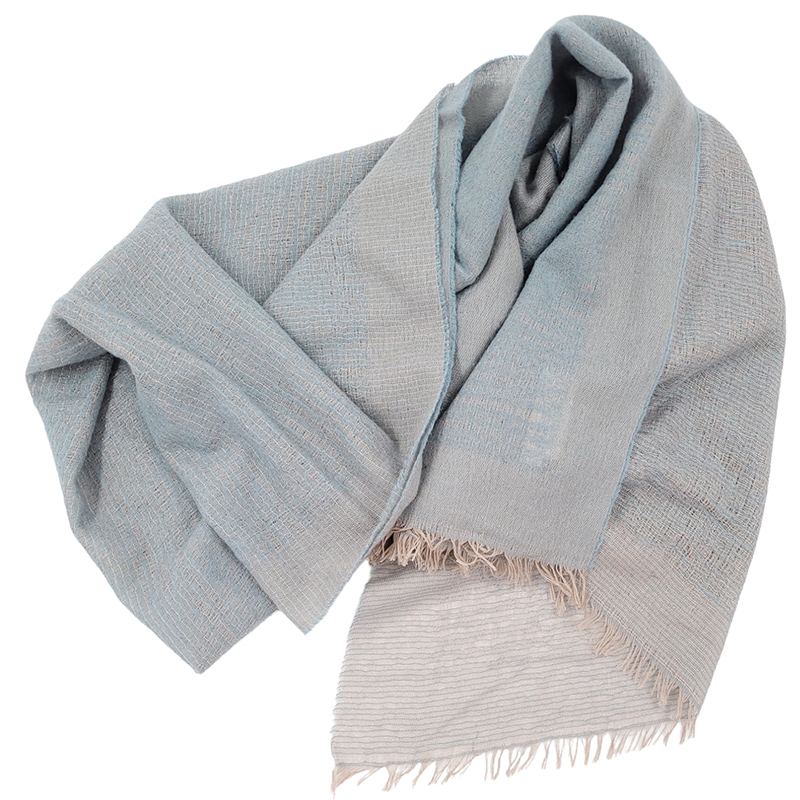 Φαρφύ Ιταλικό φουλάρι μπεζ και γαλάζιο με lurex πλέξη από σύμμεικτο μαλλί εξαιρετικής ποιότητας