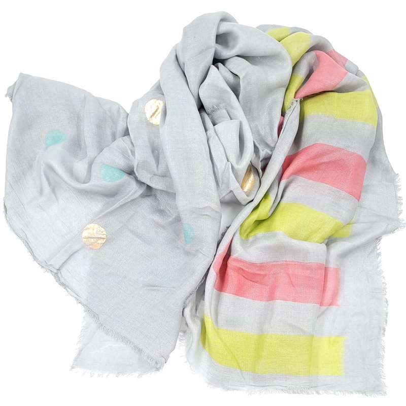 Γκρι ανοιχτό Ιταλικό φαρδύ φουλάρι εξαιρετικής ποιότητας modal με ρίγες και πουά