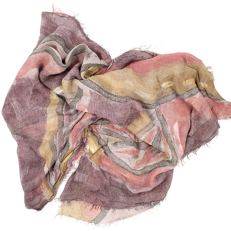 Terracotta και μουσταρδί Ιταλικό φαρδύ φουλάρι με Leaves print και εξαιρετικής ποιότητας lyocell