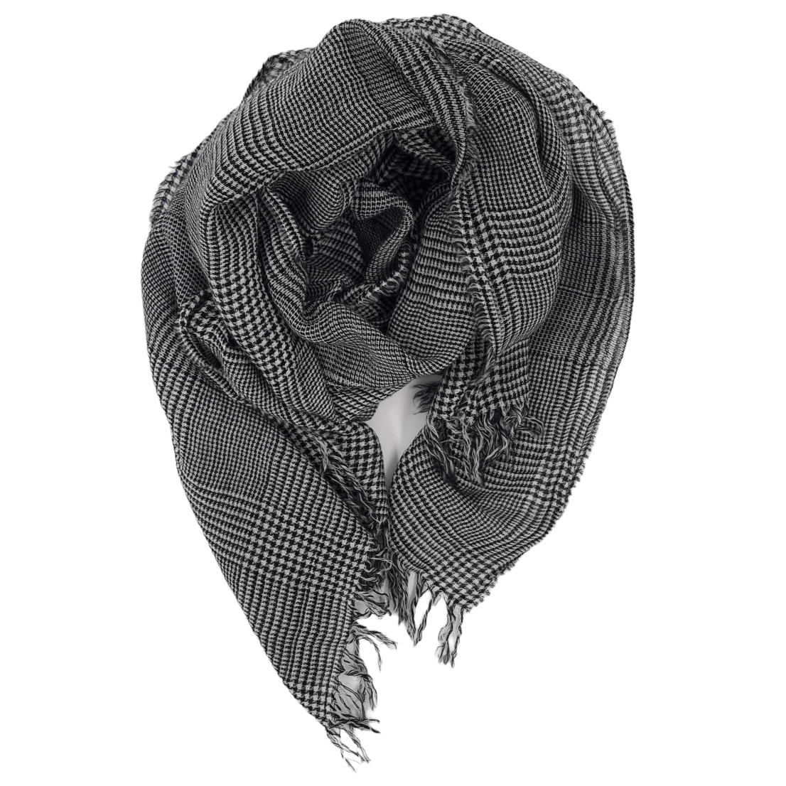 Ασπρόμαυρο unisex Pied de Poule Ιταλικό φαρδύ φουλάρι από σύμμεικτο μαλλί εξαιρετικής ποιότητας