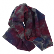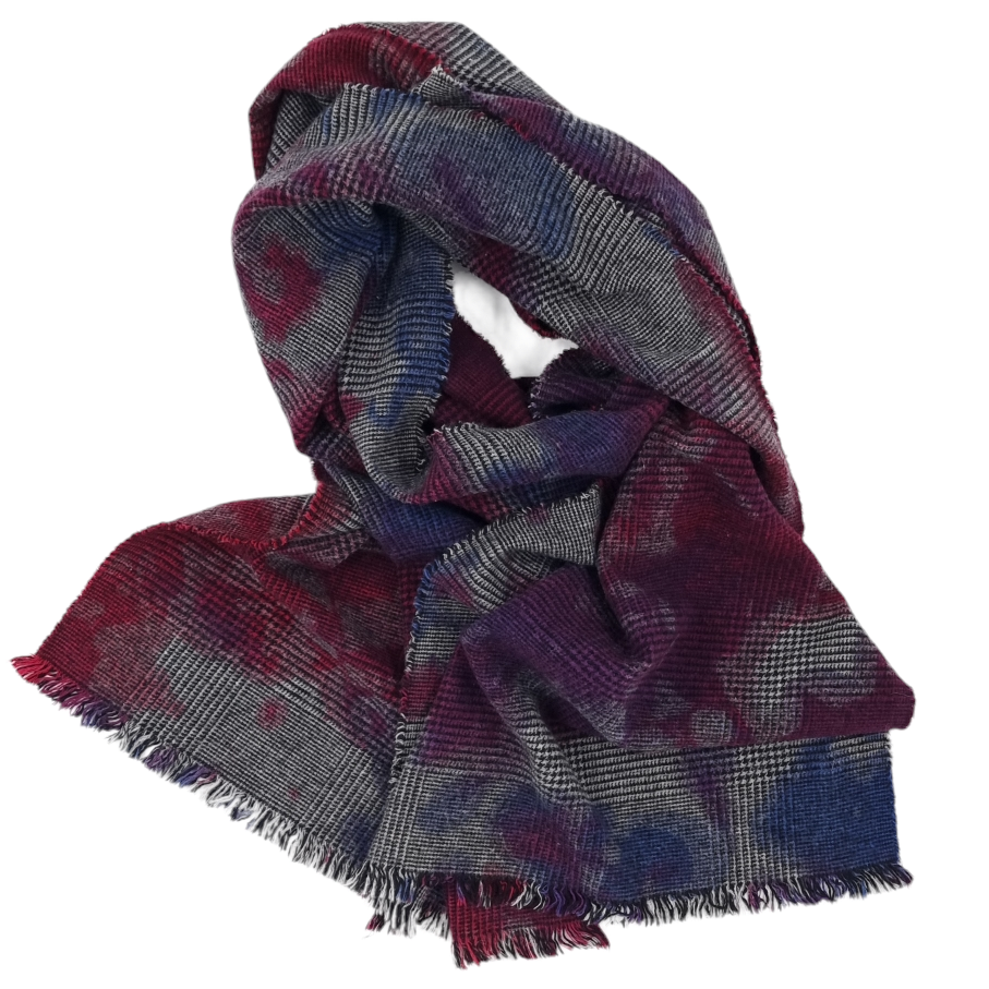 Γκρι καρό unisex Ιταλικό κασκόλ από βαμβάκι εξαιρετικής ποιότητας με μωβ και μπλε patches