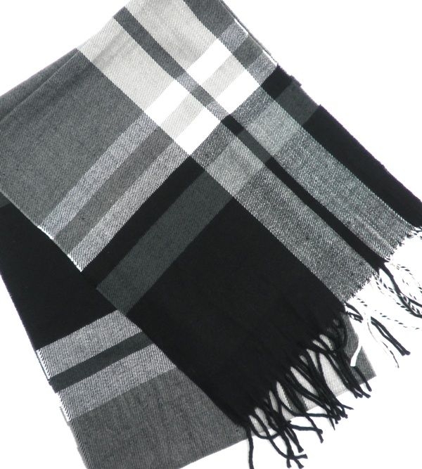 Μαύρο και γκρι unisex καρό κασκόλ με λευκές ρίγες από πολύ μαλακό ύφασμα