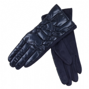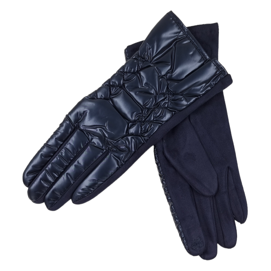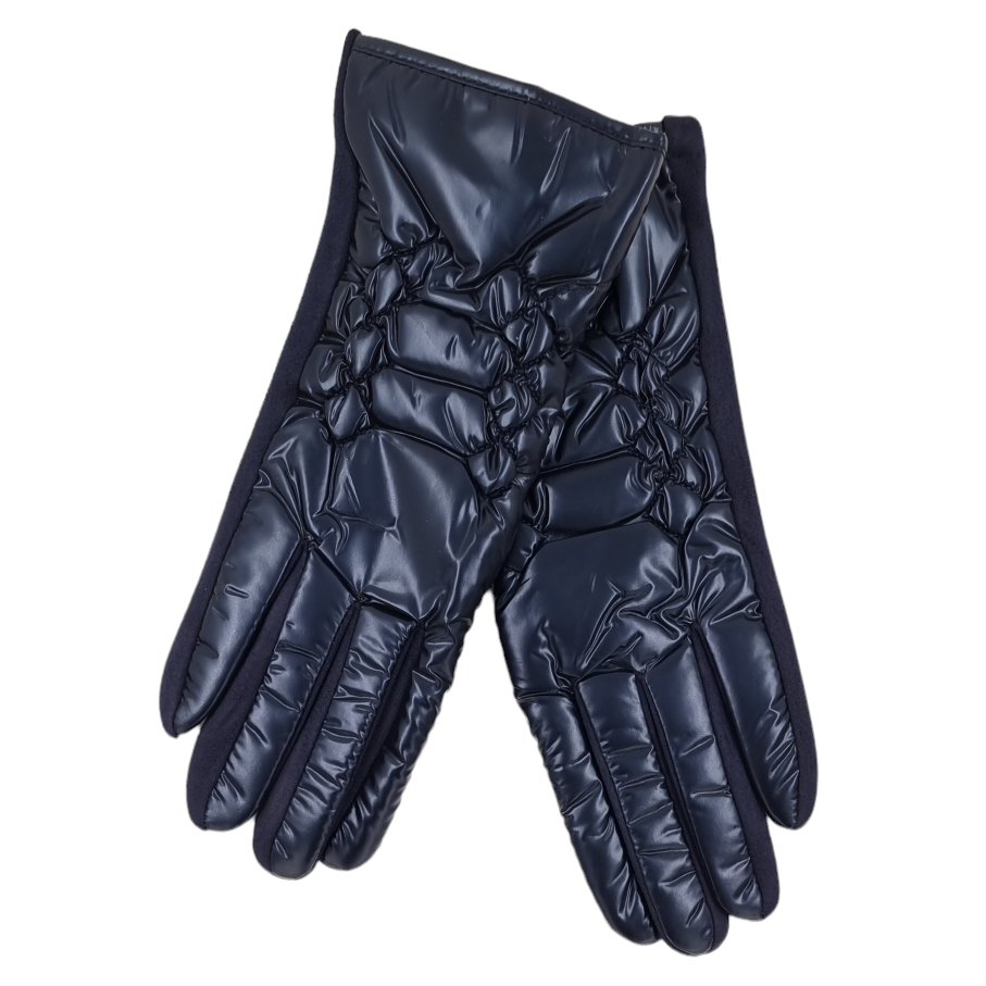 Μπλε ελαστικά γυναικεία γάντια με γυαλιστερή φουσκωτή όψη και λούτρινη επένδυση