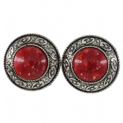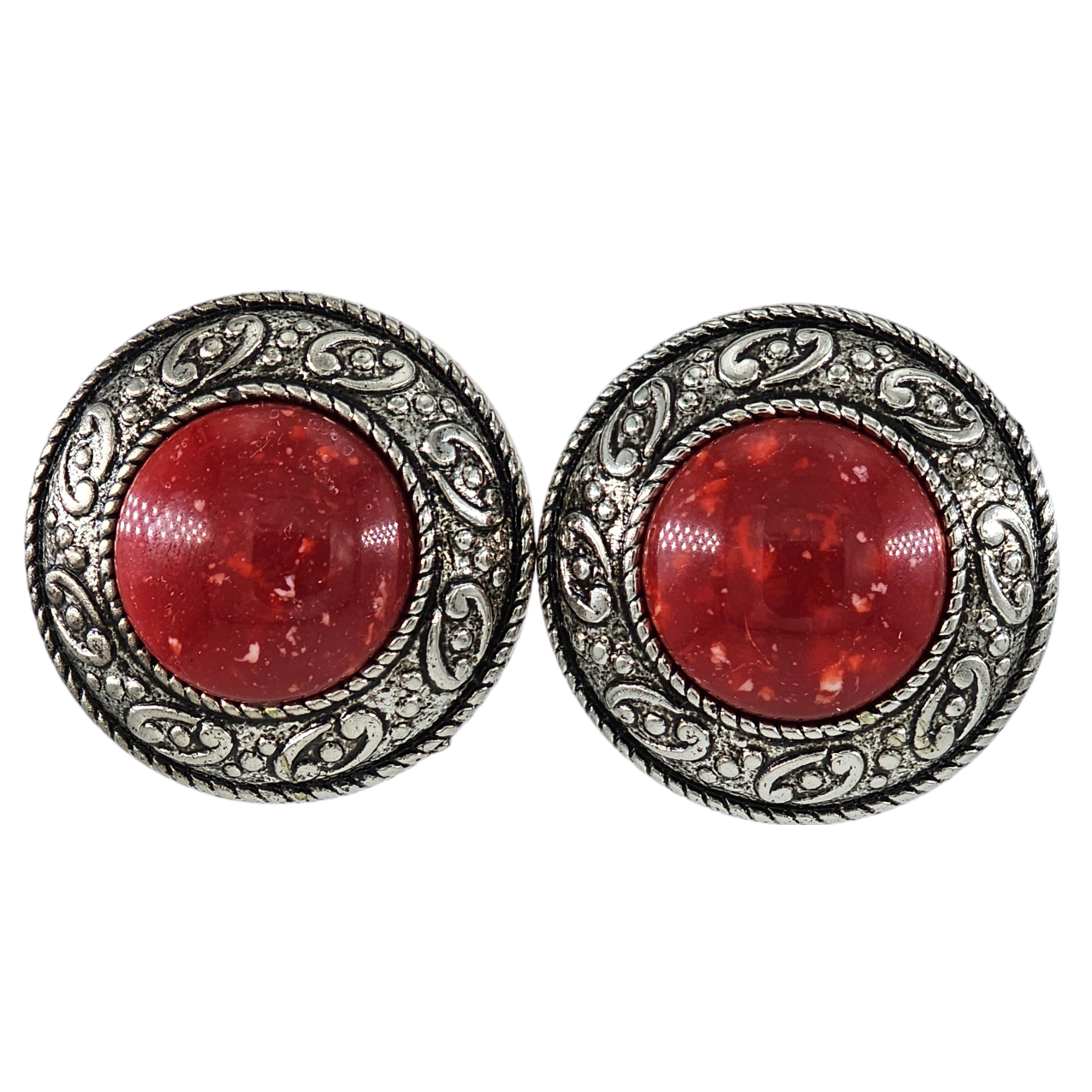 Antique ασημί σκαλιστά κλιπ σκουλαρίκια με μεγάλες terracotta πέρλες
