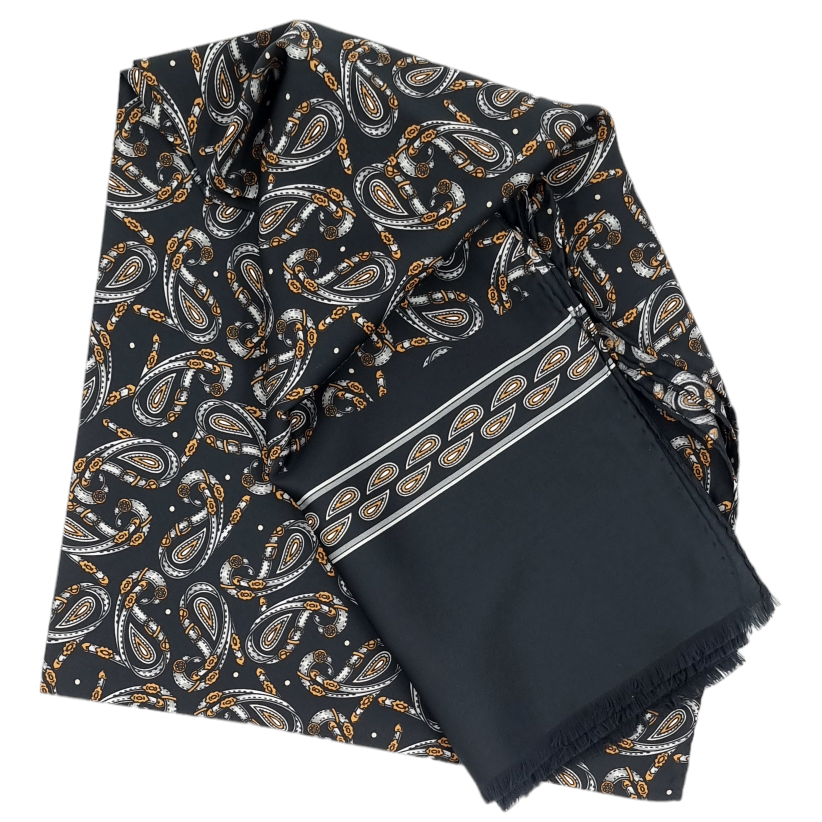 Μαύρο ανδρικό Ιταλικό φουλάρι με κάμελ Λαχούρ σχέδια