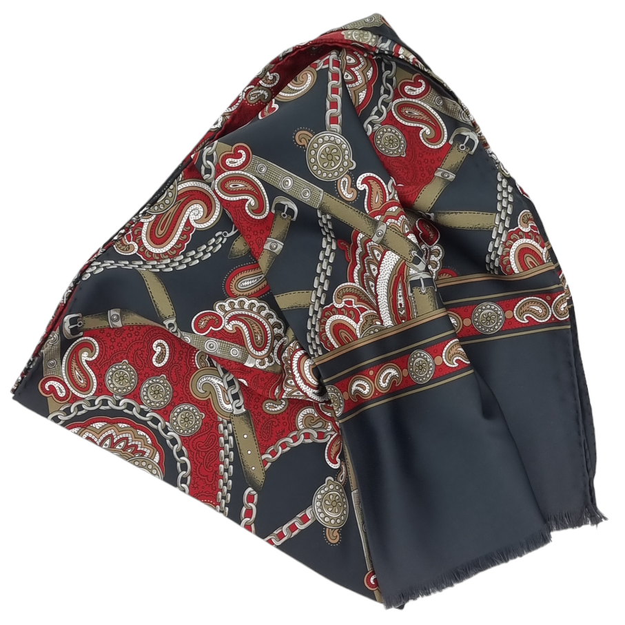 Μπλε ανδρικό Ιταλικό φουλάρι με χακί ζώνες και μπορντό λαχούρ