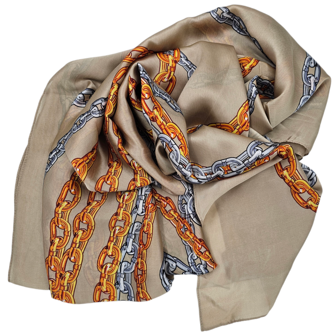 Μπεζ της άμμου εσάρπα από σύμμεικτο μετάξι με γκρι και χρυσές αλυσίδες