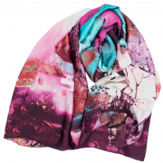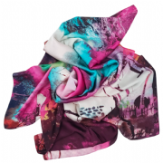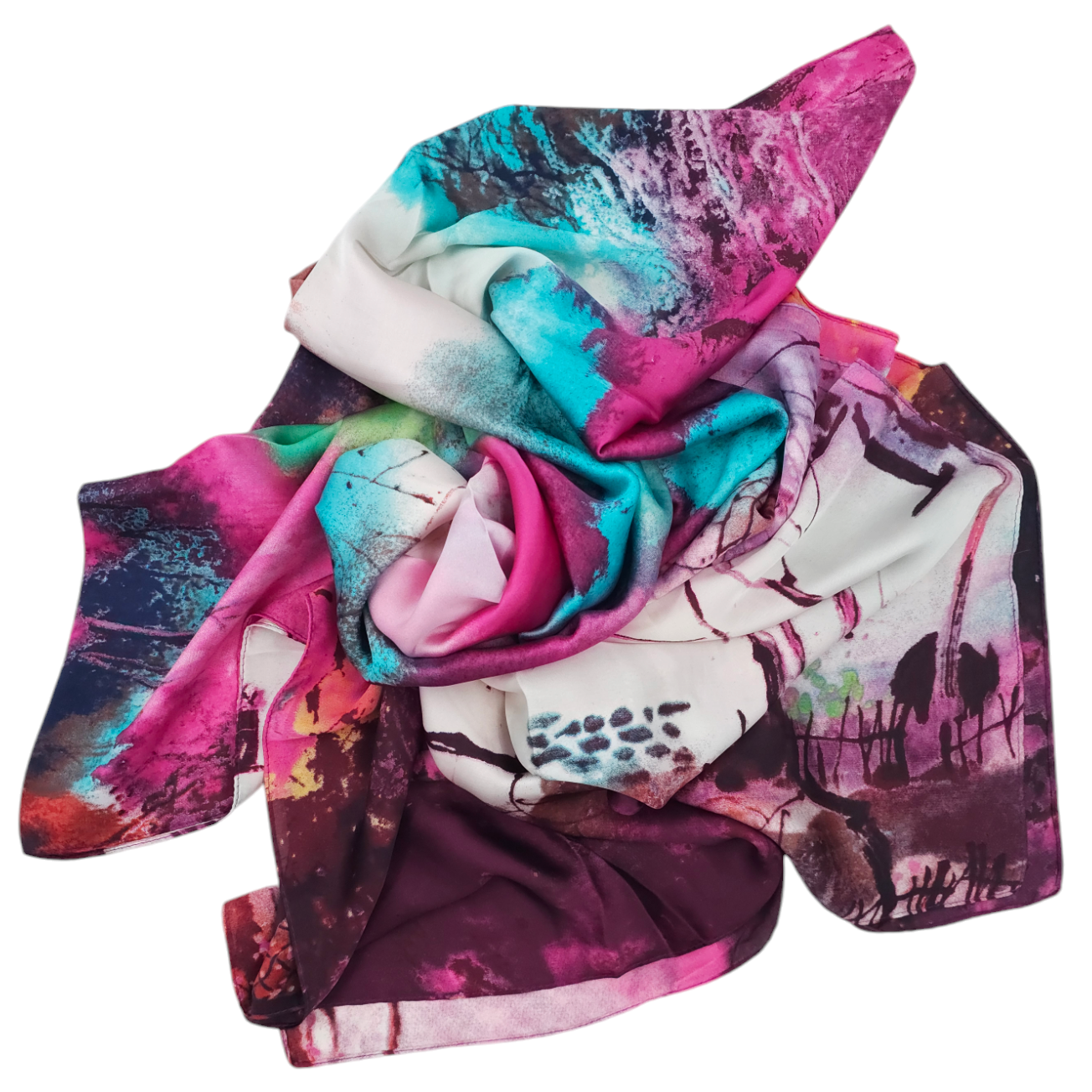 Plum μωβ, φούξια και τιρκουάζ μεταξωτή εσάρπα House beside the lake