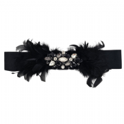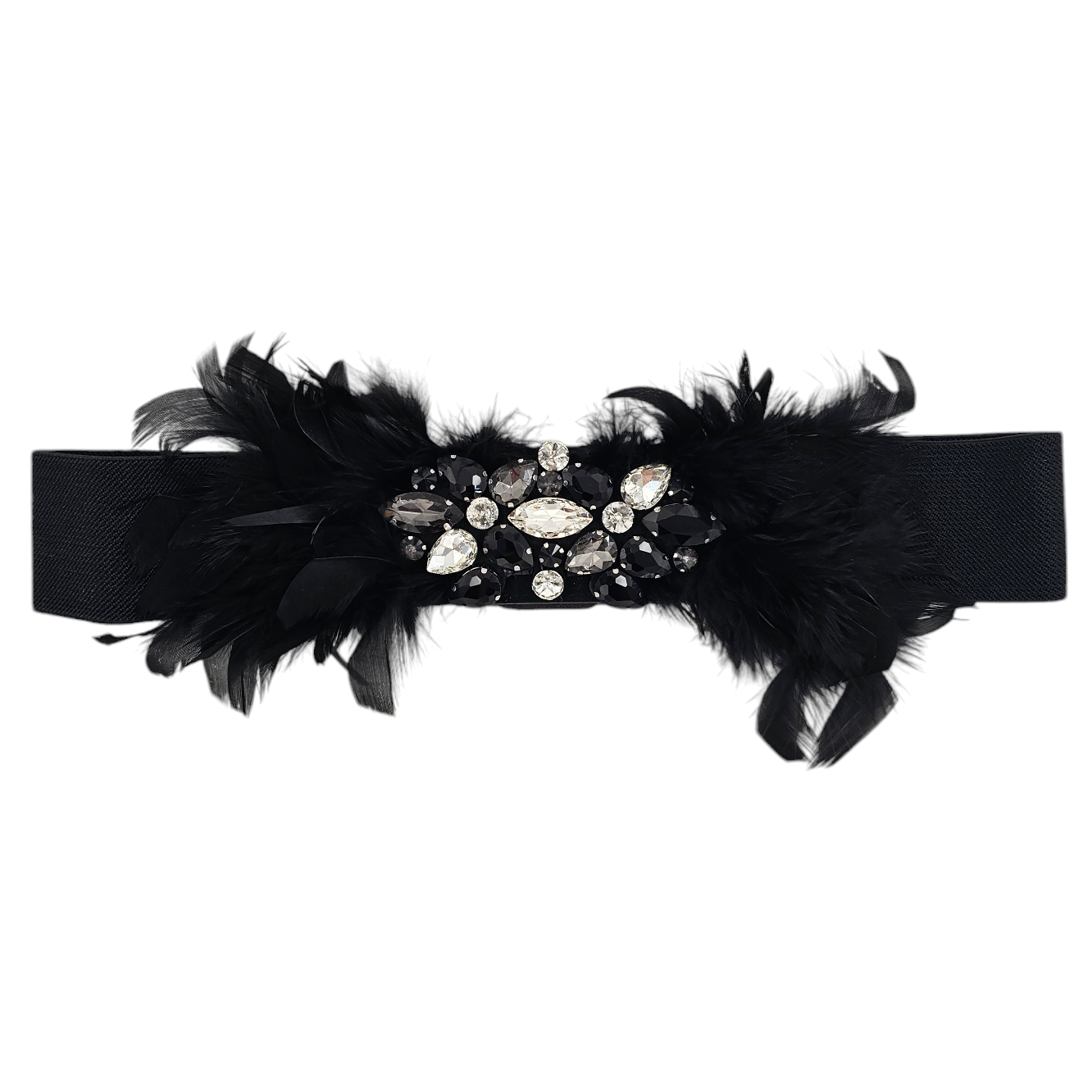 Μαύρη ελαστική ζώνη με κρύσταλλα και φτερά