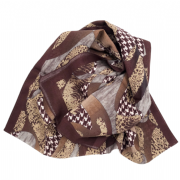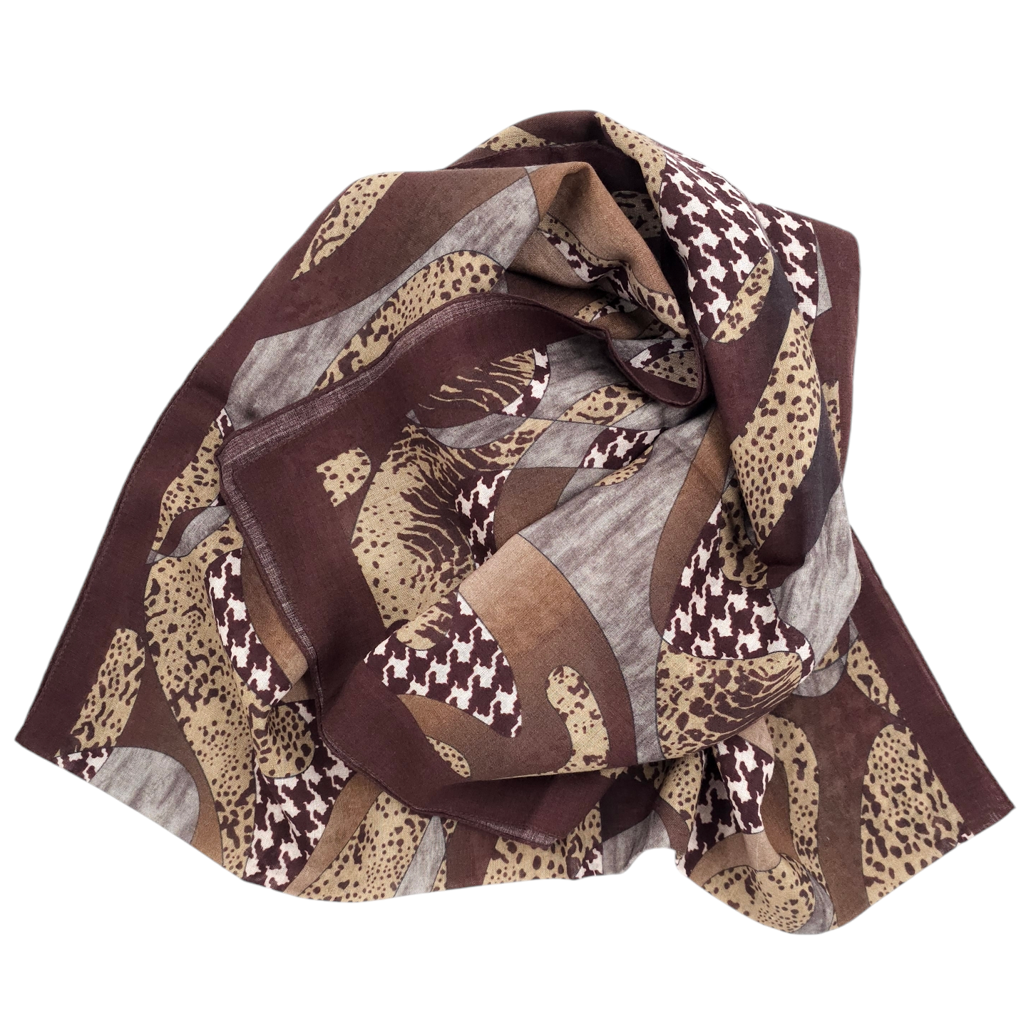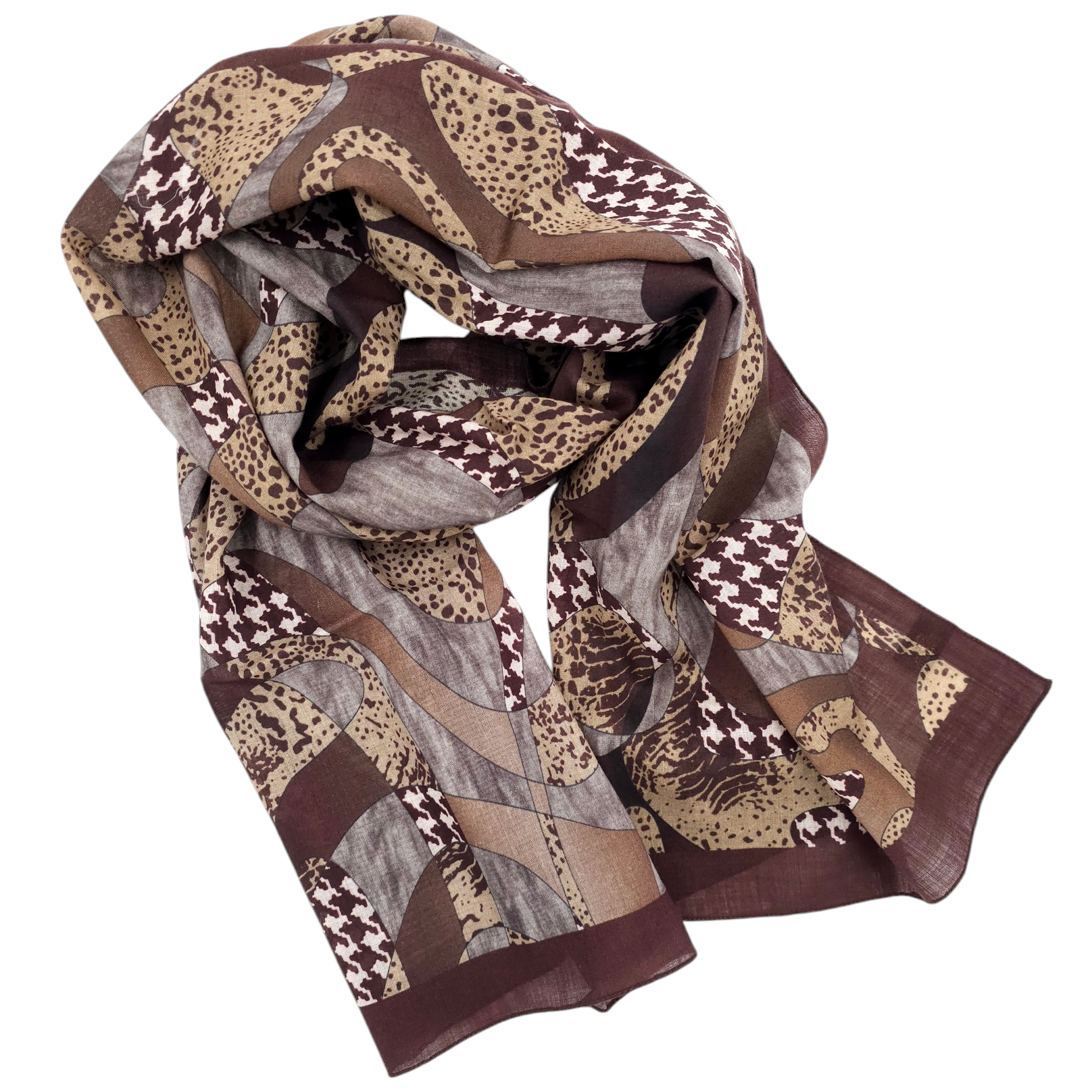Ιταλικό φαρδύ μάλλινο φουλάρι Animal print και pied de poule σε chocolate καφέ αποχρώσεις