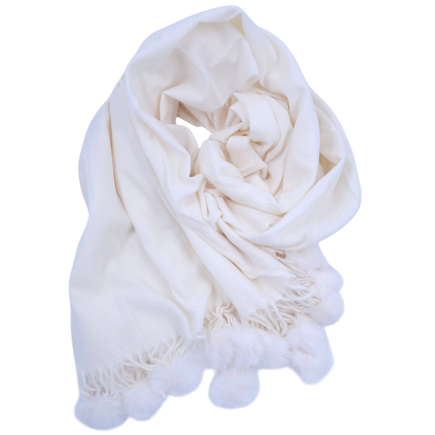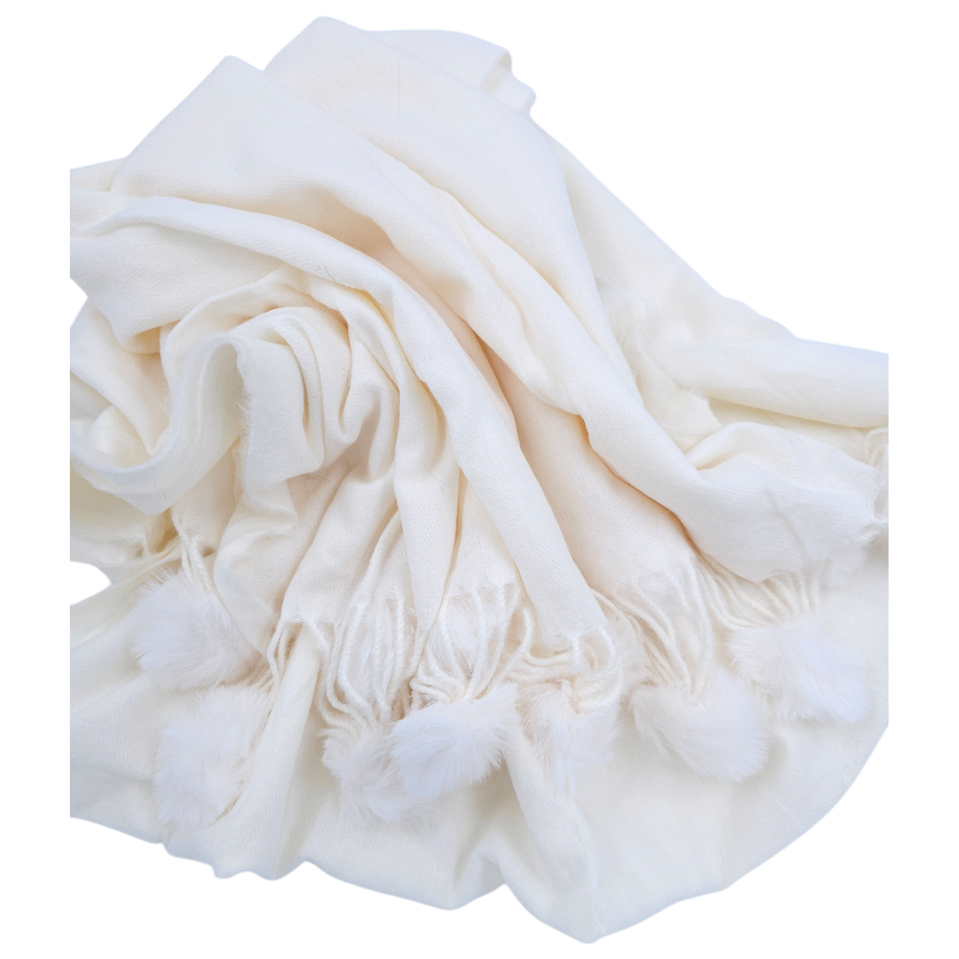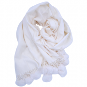 Εκρού μονόχρωμη εσάρπα blanket με pom-pom
