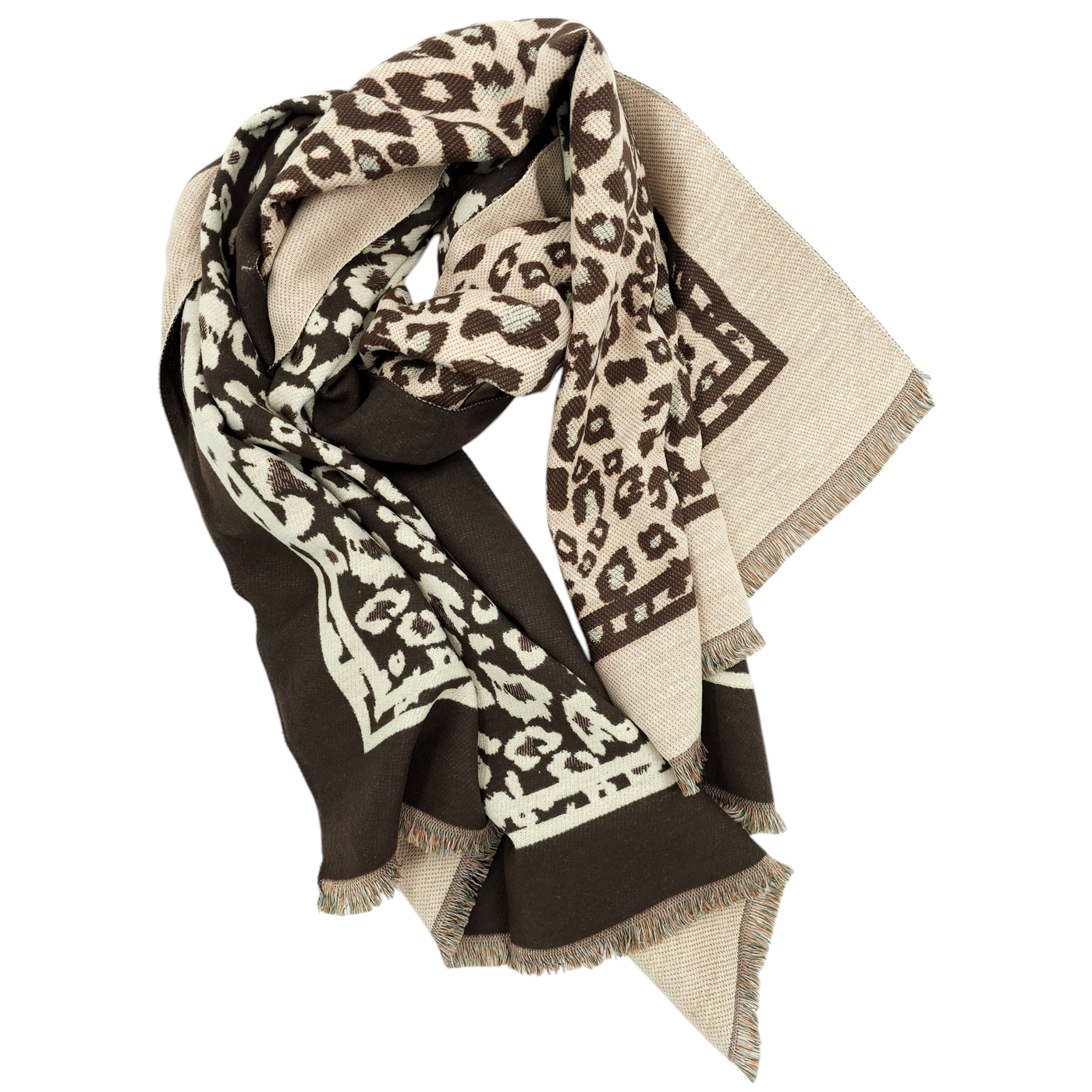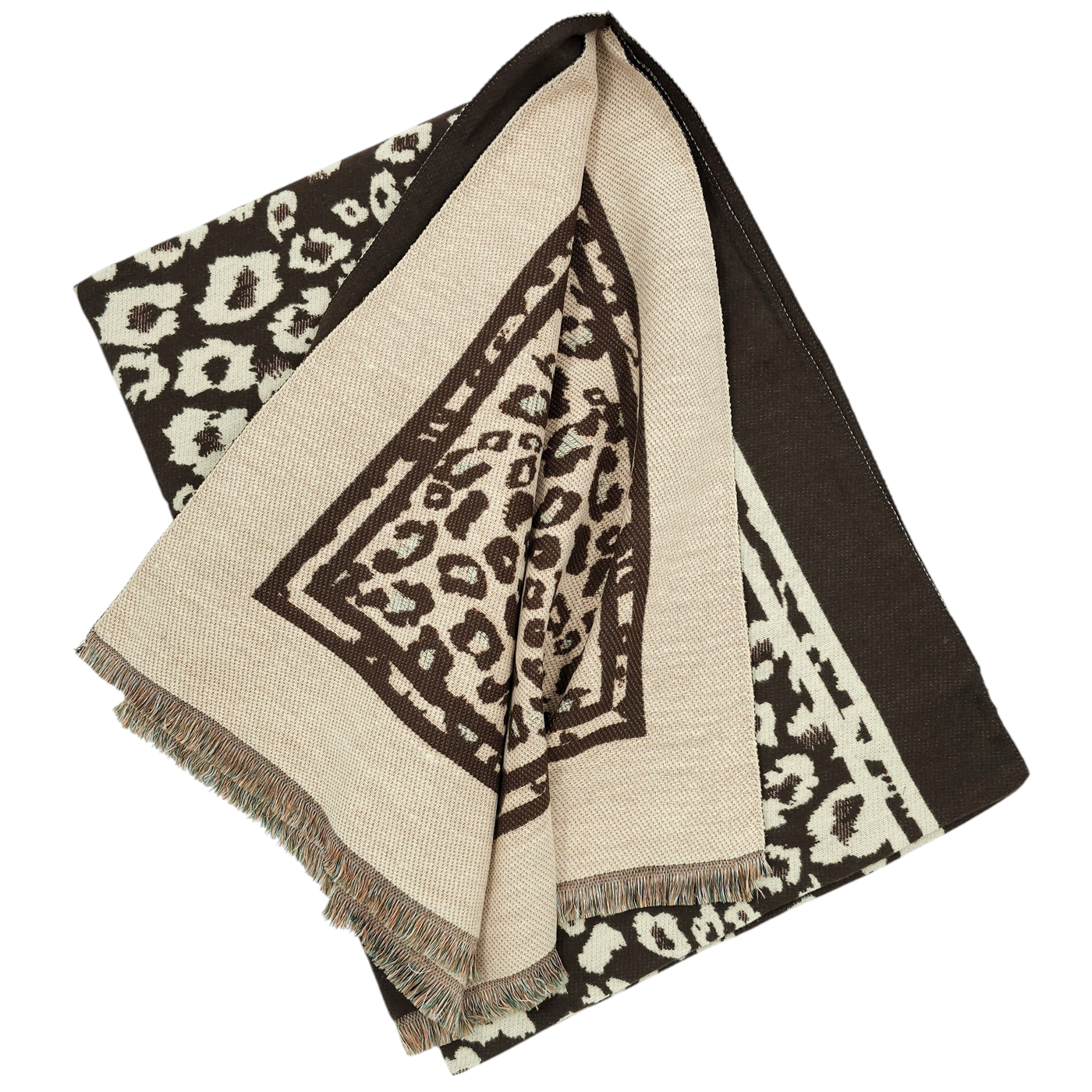 Καφέ και εκρού blanket πασμίνα διπλής όψης animal print από σύμμεικτο μαλλί