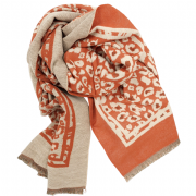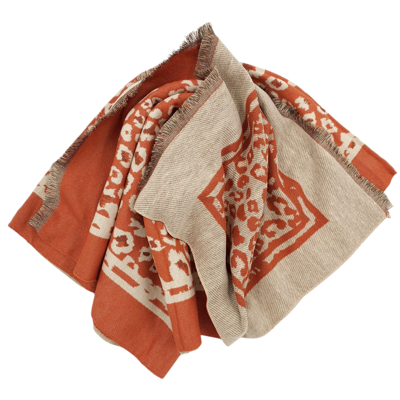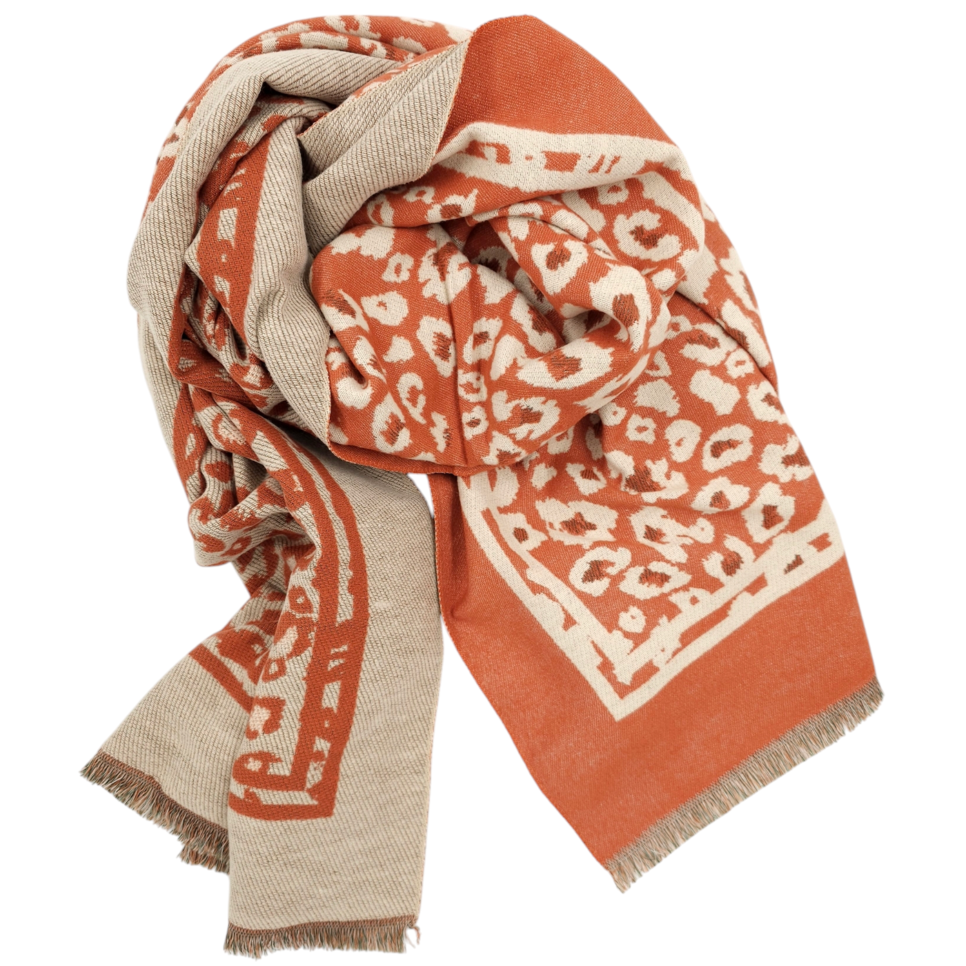Πορτοκαλί και μπεζ blanket πασμίνα διπλής όψης animal print από σύμμεικτο μαλλί