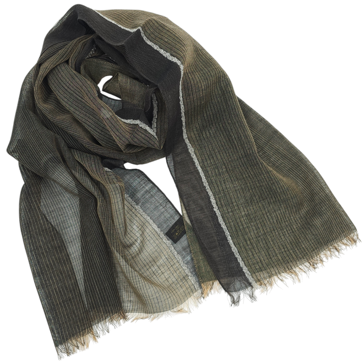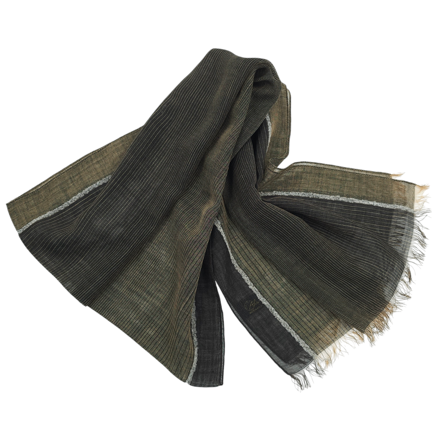 Καφέ και μπεζ Ιταλικό μάλλινο φουλάρι με λεπτές ρίγες εξαιρετικής ποιότητας