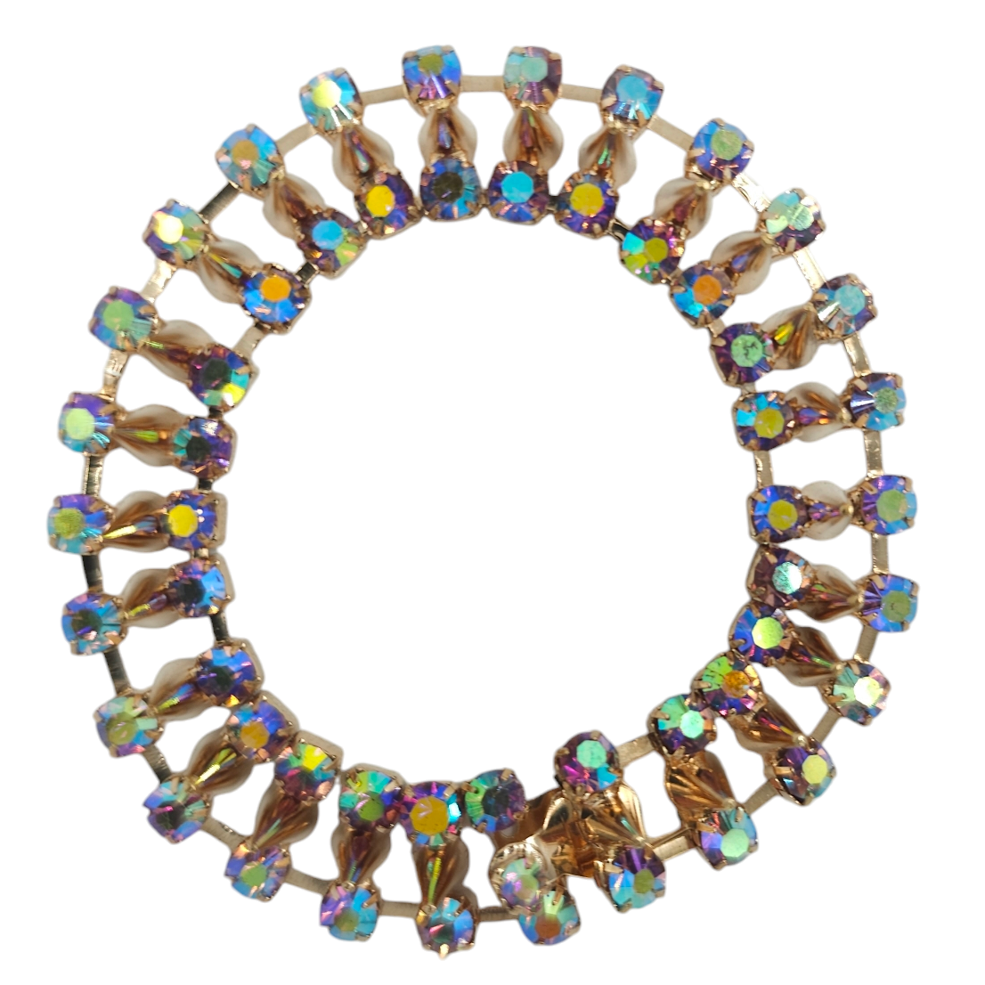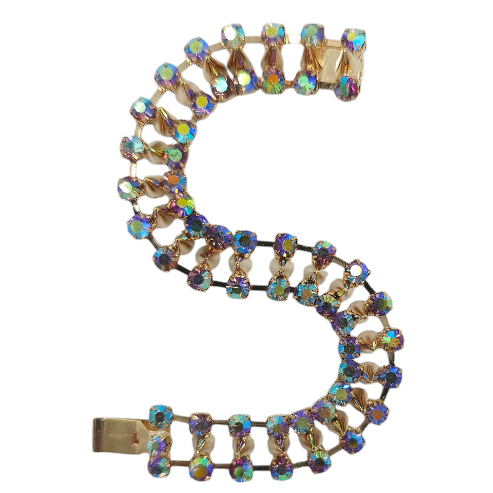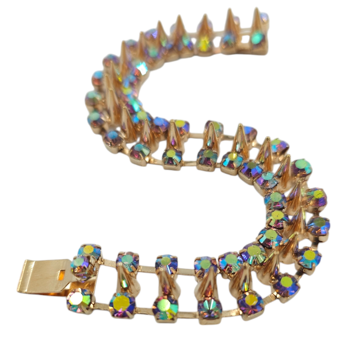 Χρυσαφί rock βραχιόλι με καρφιά και ιριδίζον στρας