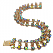 Χρυσαφί rock βραχιόλι με καρφιά και ιριδίζον στρας