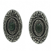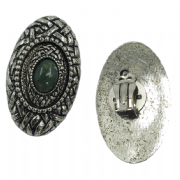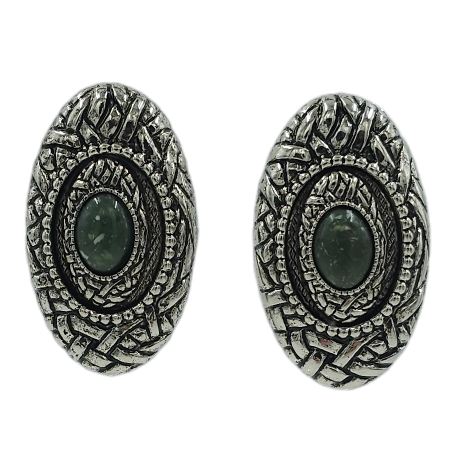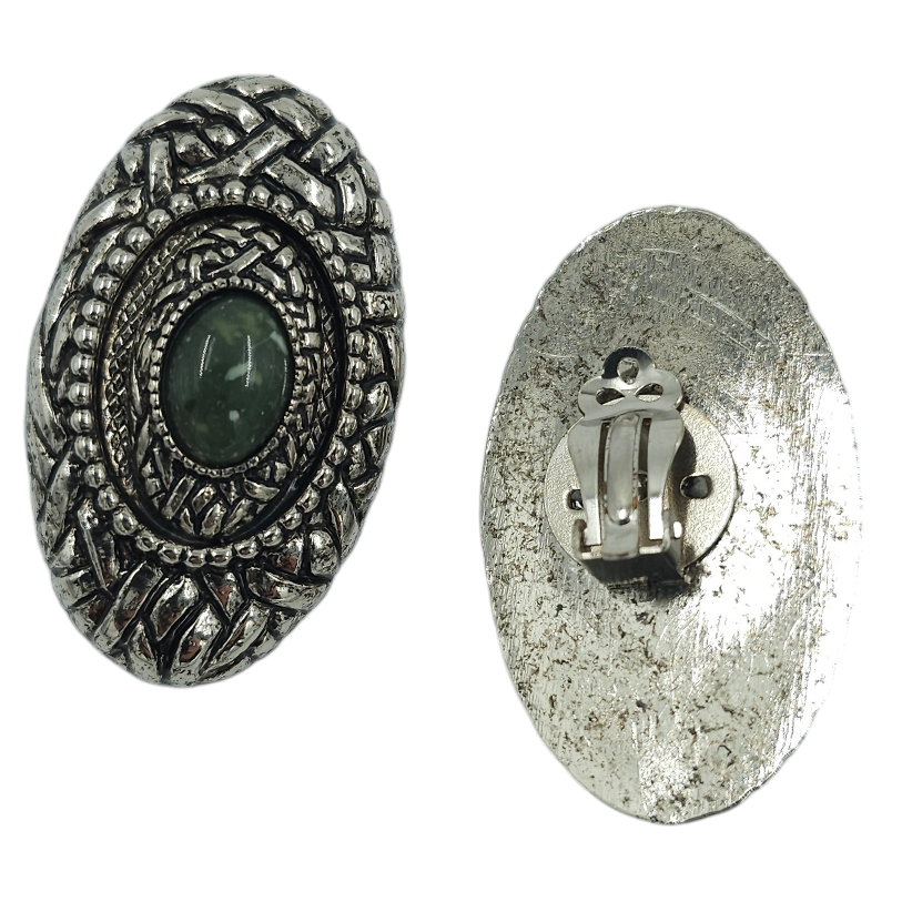 Antique ασημί σκαλιστά οβάλ κλιπ σκουλαρίκια με λαδί πέτρες