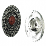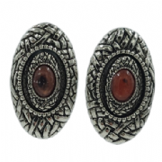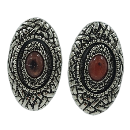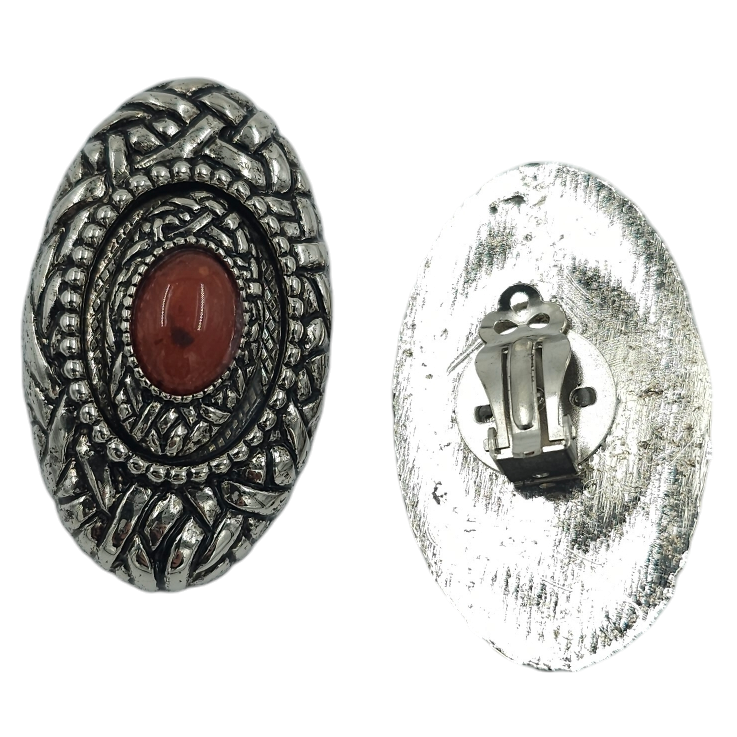 Antique ασημί σκαλιστά οβάλ κλιπ σκουλαρίκια με ταμπά πέτρες