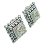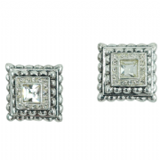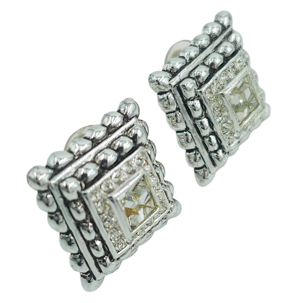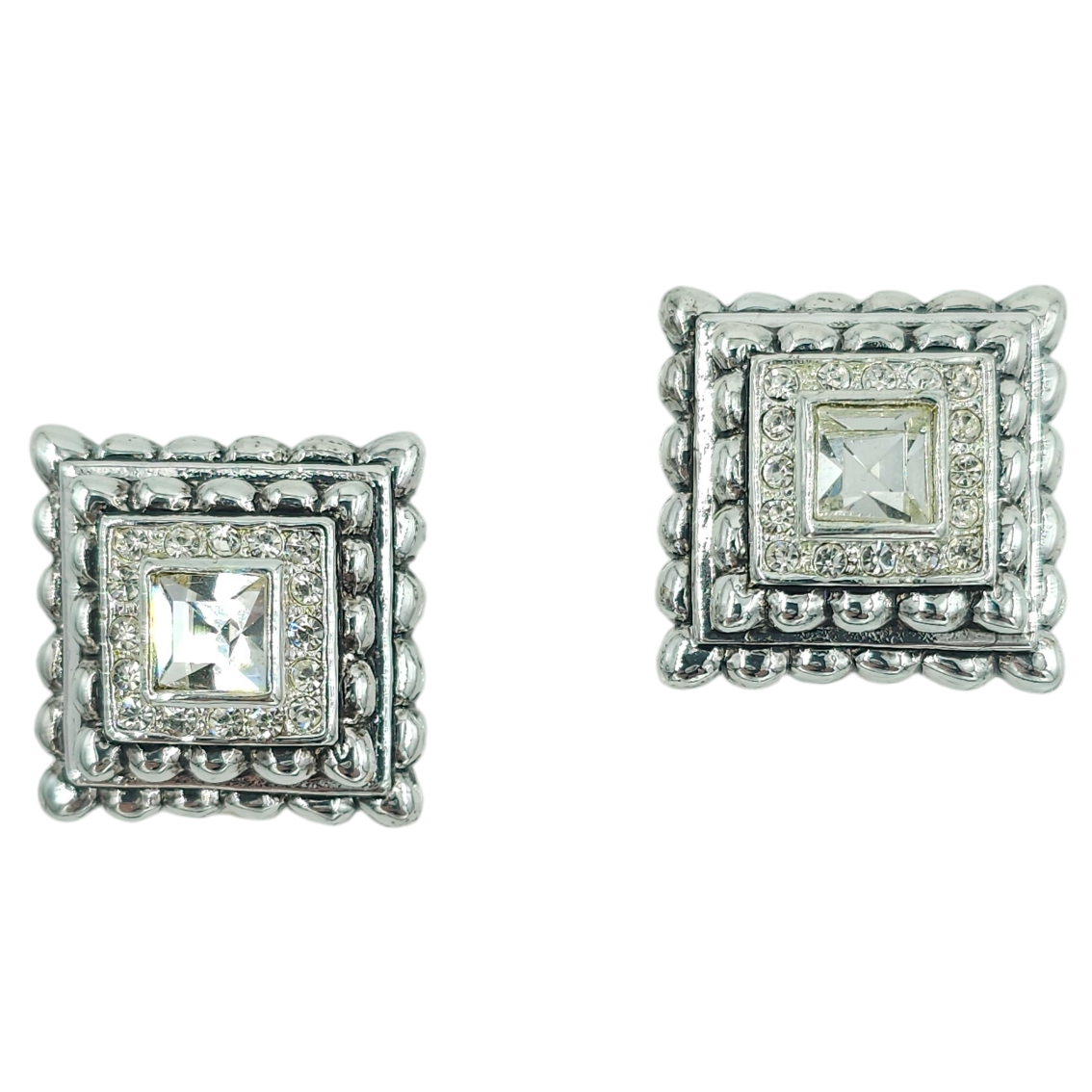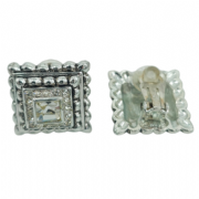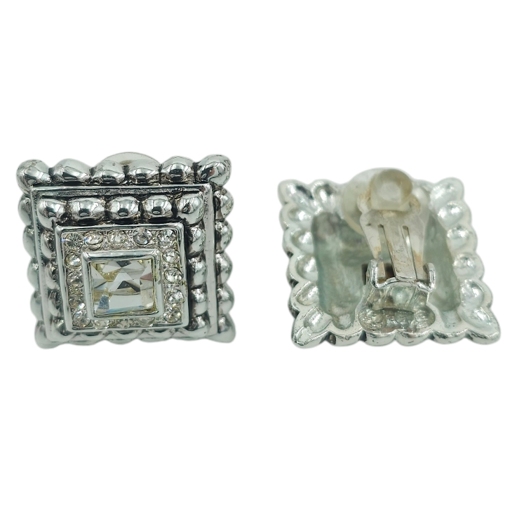 Τετράγωνα vintage Queen ασημένια κλιπ σκουλαρίκια με διάφανα κρύσταλλα