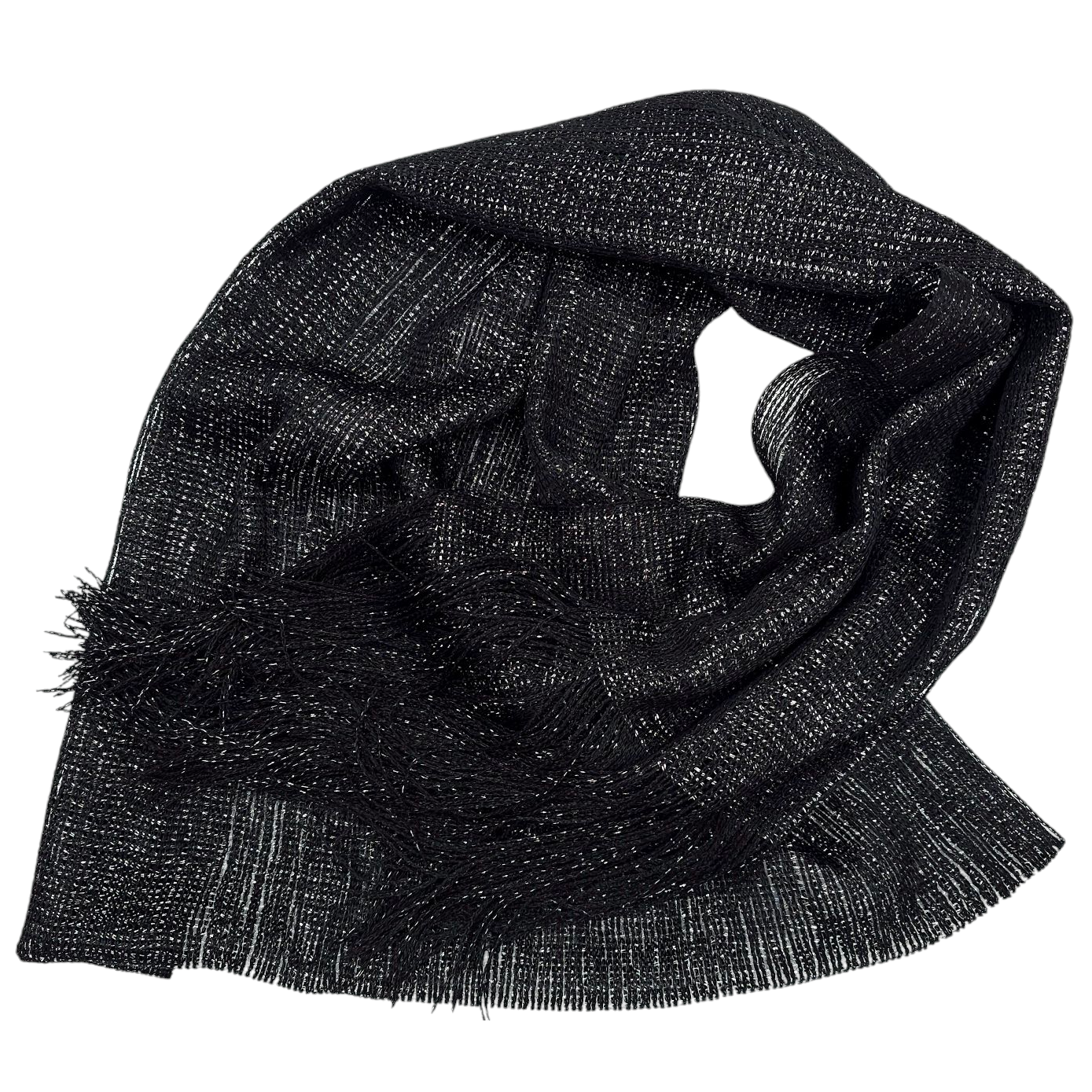 Μαύρη διχτυωτή εσάρπα με ασημί lurex και μακριά κρόσσια