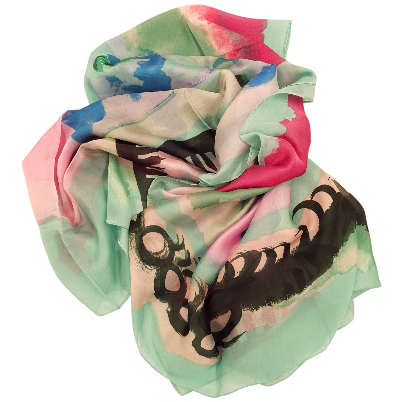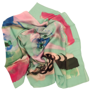 Paraiba floral εσάρπα από σύμμεικτο μετάξι με φουξ, λιλά και royal μπλε λουλούδια