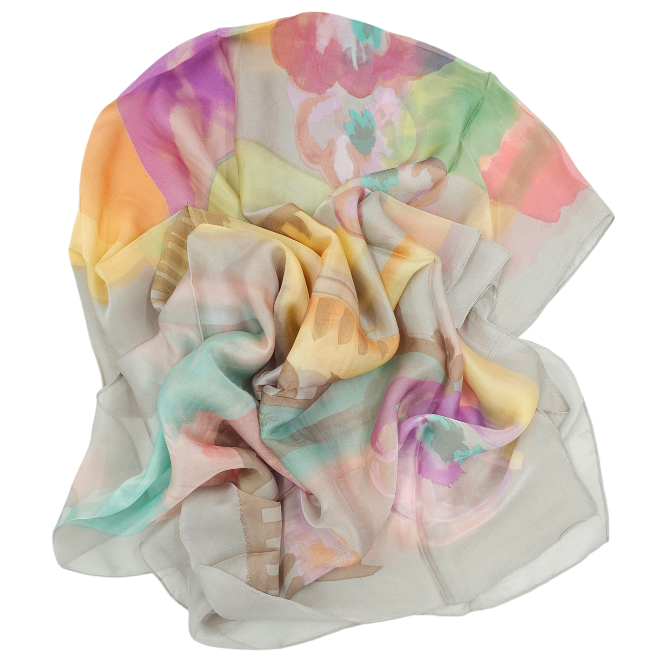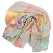 Elephant floral εσάρπα από σύμμεικτο μετάξι με λιλά, ροζ και σομόν λουλούδια