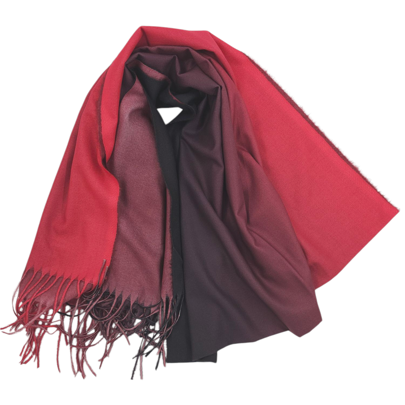 Ανθρακί, δαμασκηνί και watermelon κόκκινη ombre πασμίνα διπλής όψης με δαμασκηνί μονόχρωμη πλευρά
