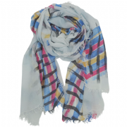 Γαλάζιο Ιταλικό modal φουλάρι - παρεό με κίτρινα, φούξια, μπλε και μαύρα brush prints
