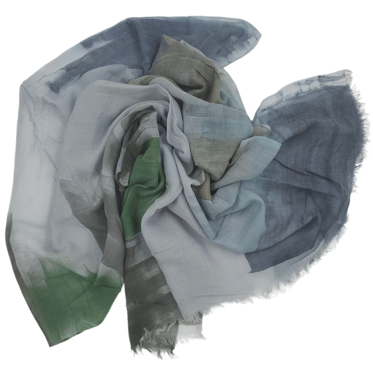 Γκρι Ιταλικό modal φουλάρι με πράσινο, elephant και jeans brush effect boarders