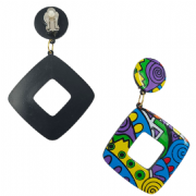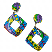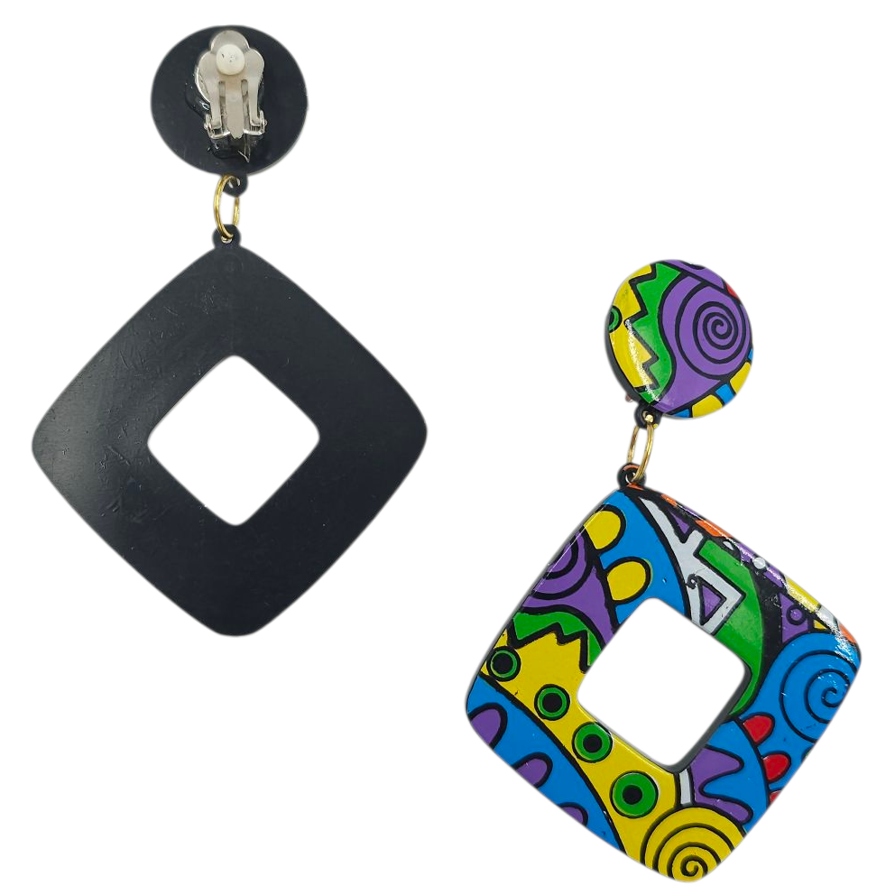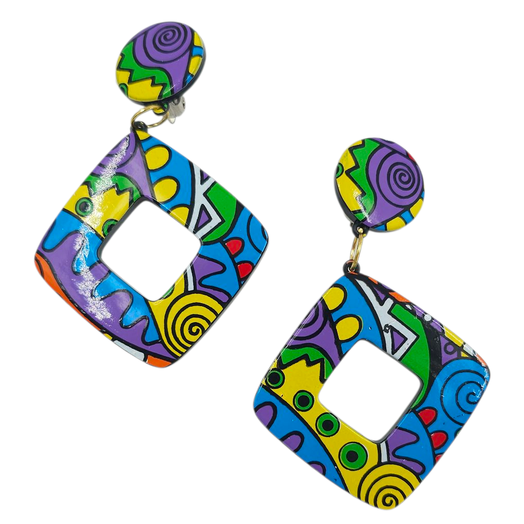 Ρόμβοι clip σκουλαρίκια με τιρκουάζ, λιλά, κίτρινά και πράσινα aztec print