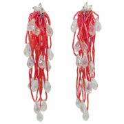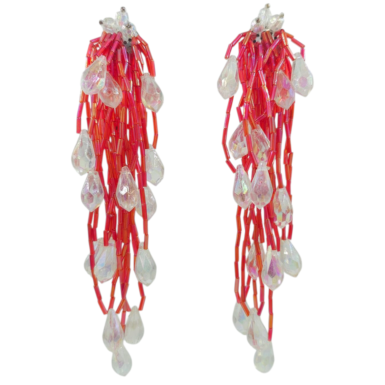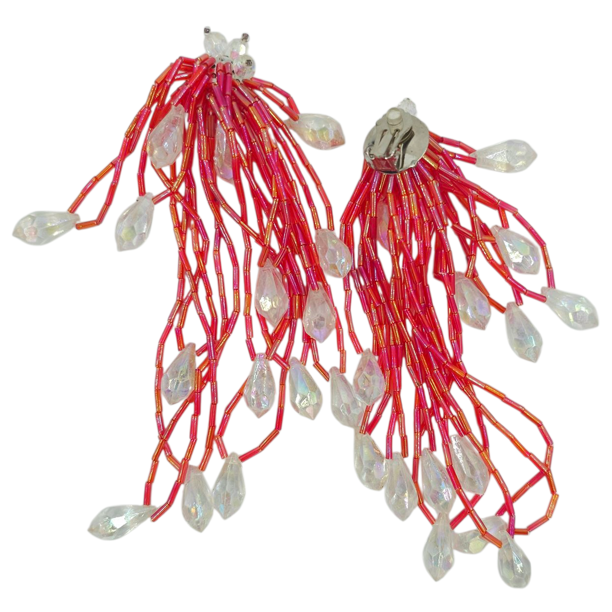 Μακριά clip σκουλαρίκια με κόκκινες χάντρες και διάφανα κρυσταλλάκια