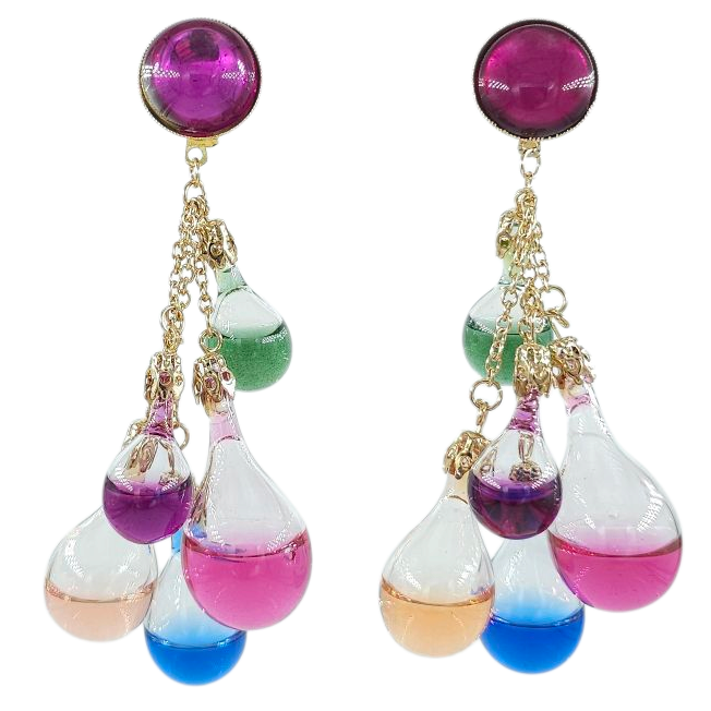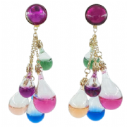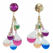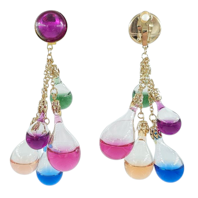 Χρυσαφί μακριά clip σκουλαρίκια με φούξια πέρλες και χρωματιστά liquid drops