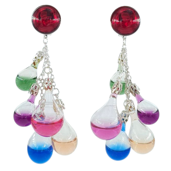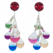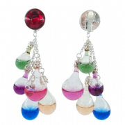 Ασημί μακριά clip σκουλαρίκια με κόκκινες πέρλες και χρωματιστά liquid drops