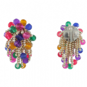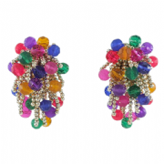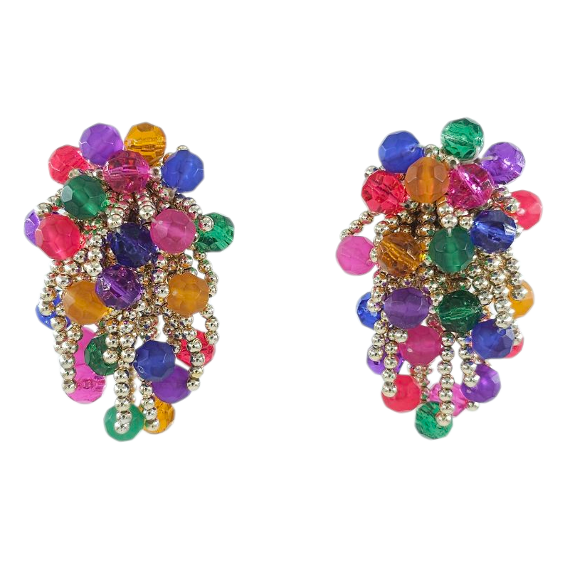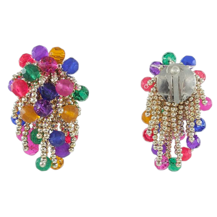 Fancy clip σκουλαρίκια με χρυσαφί dot αλυσίδες και πολύχρωμες πολυγωνικές χάντρες