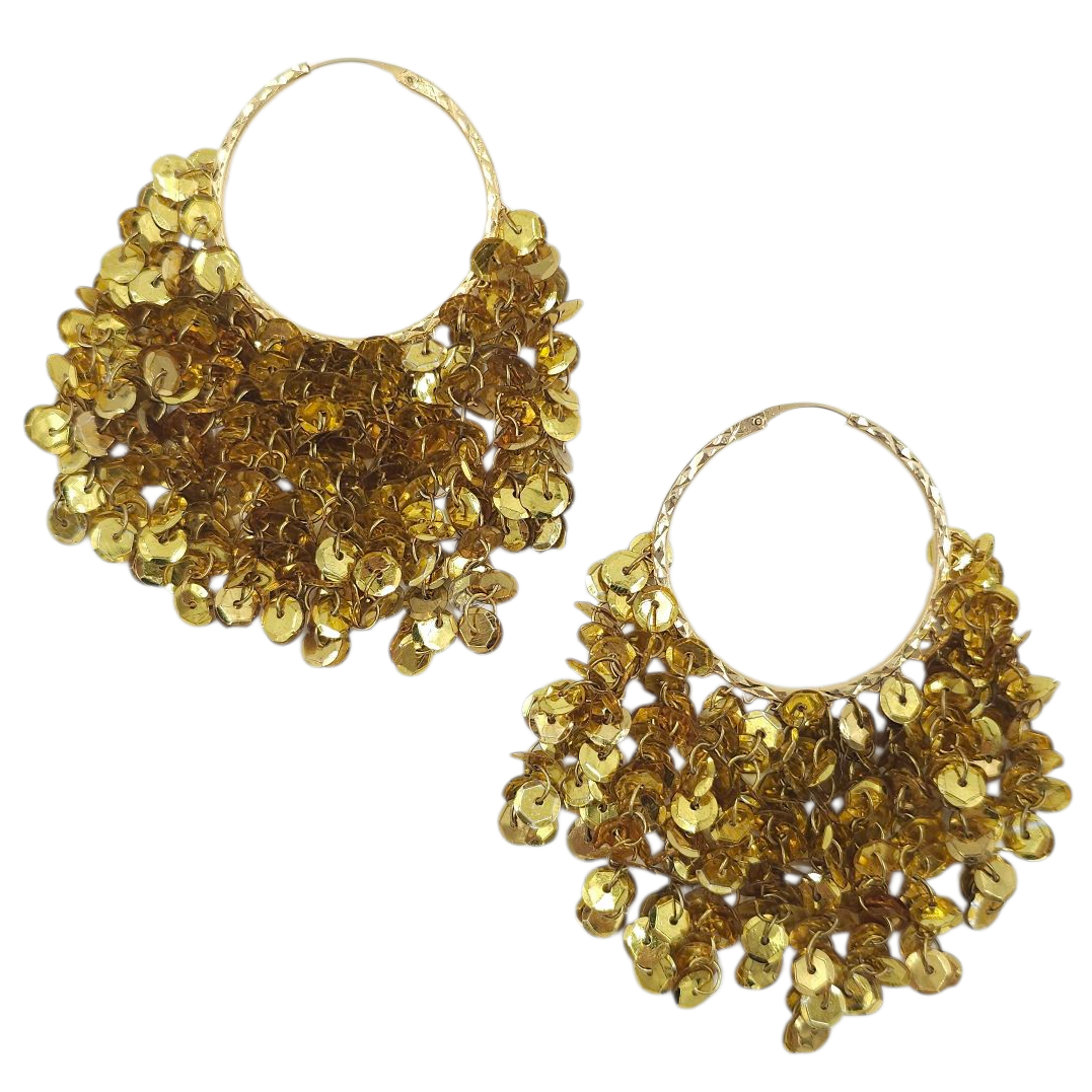 Χρυσαφί σφυρήλατοι κρίκοι με κρεμαστές raindrop χρυσαφί παγιέτες