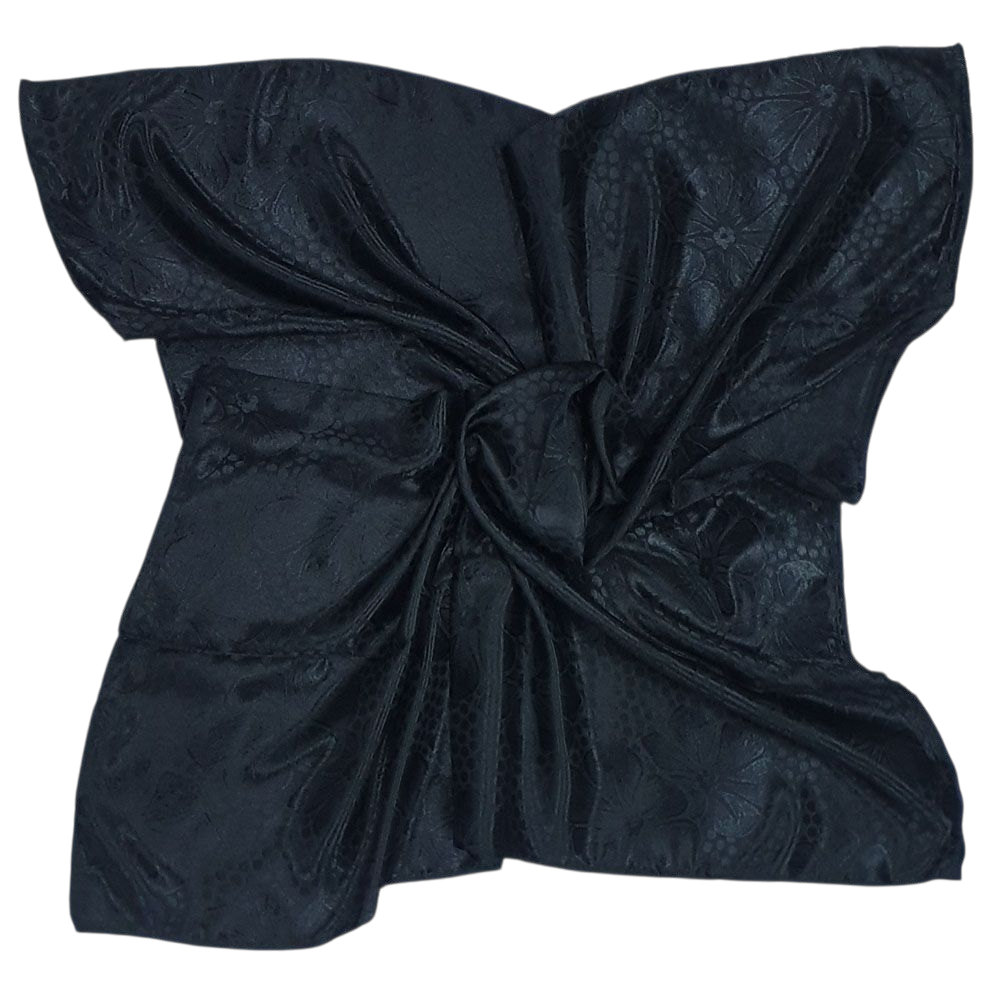 Μαύρη γυαλιστερή Ιταλική μαντήλα με ανάγλυφα πουά και floral σχέδια