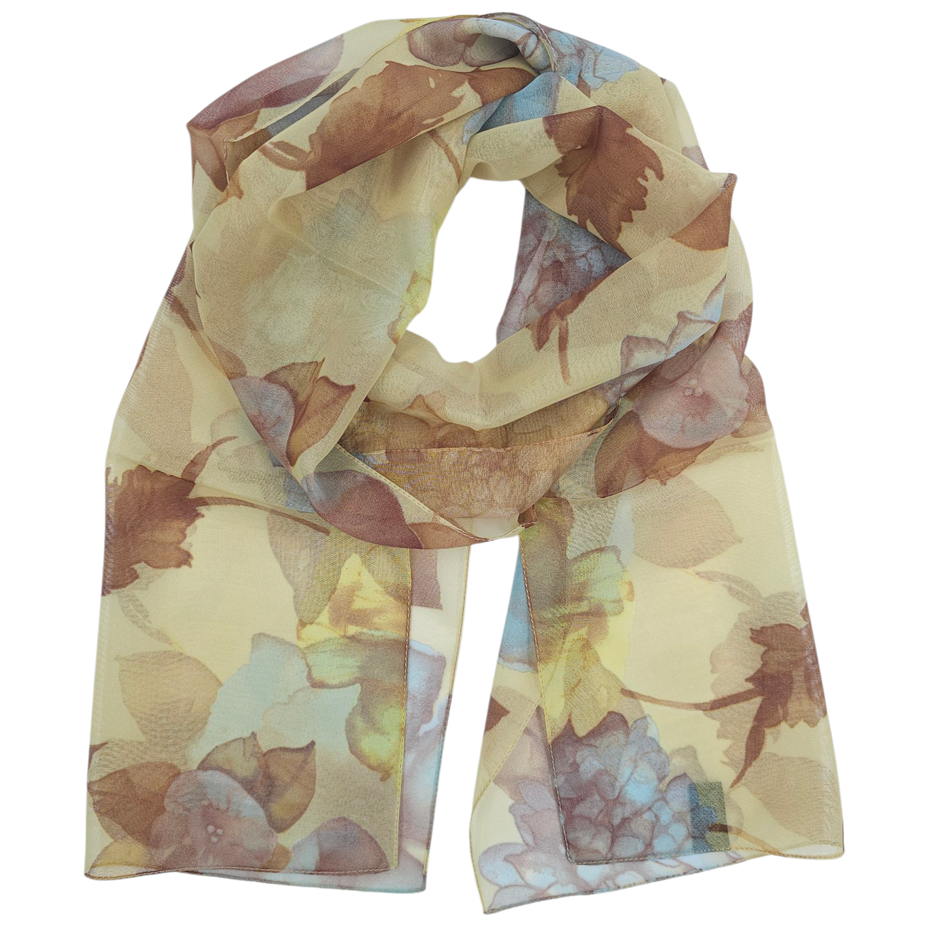 Κίτρινο lemon Ιταλικό φουλάρι με γαλάζια λουλούδια
