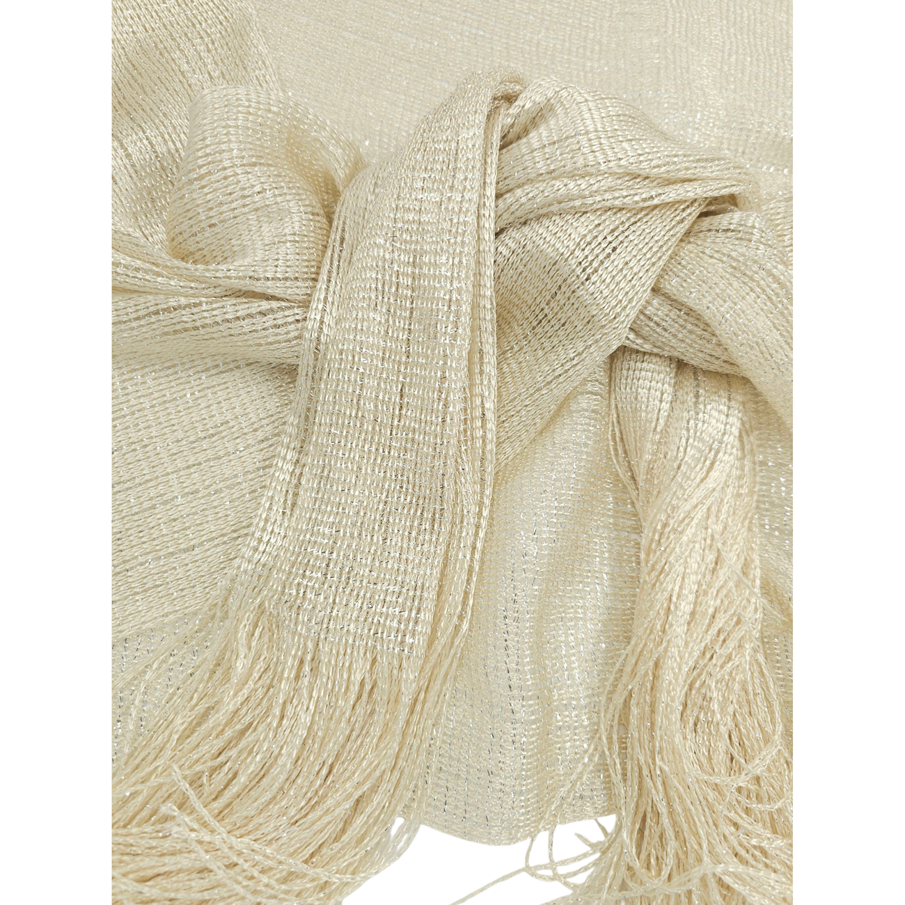 Εκρού διχτυωτή εσάρπα με ασημί lurex και μακριά κρόσσια
